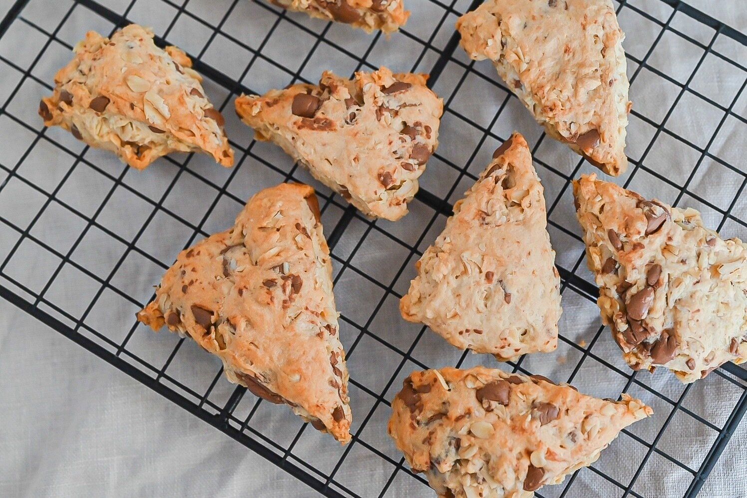 オートミールのおかげでホロホロとした本格的な食感のスコーンになりますよ。