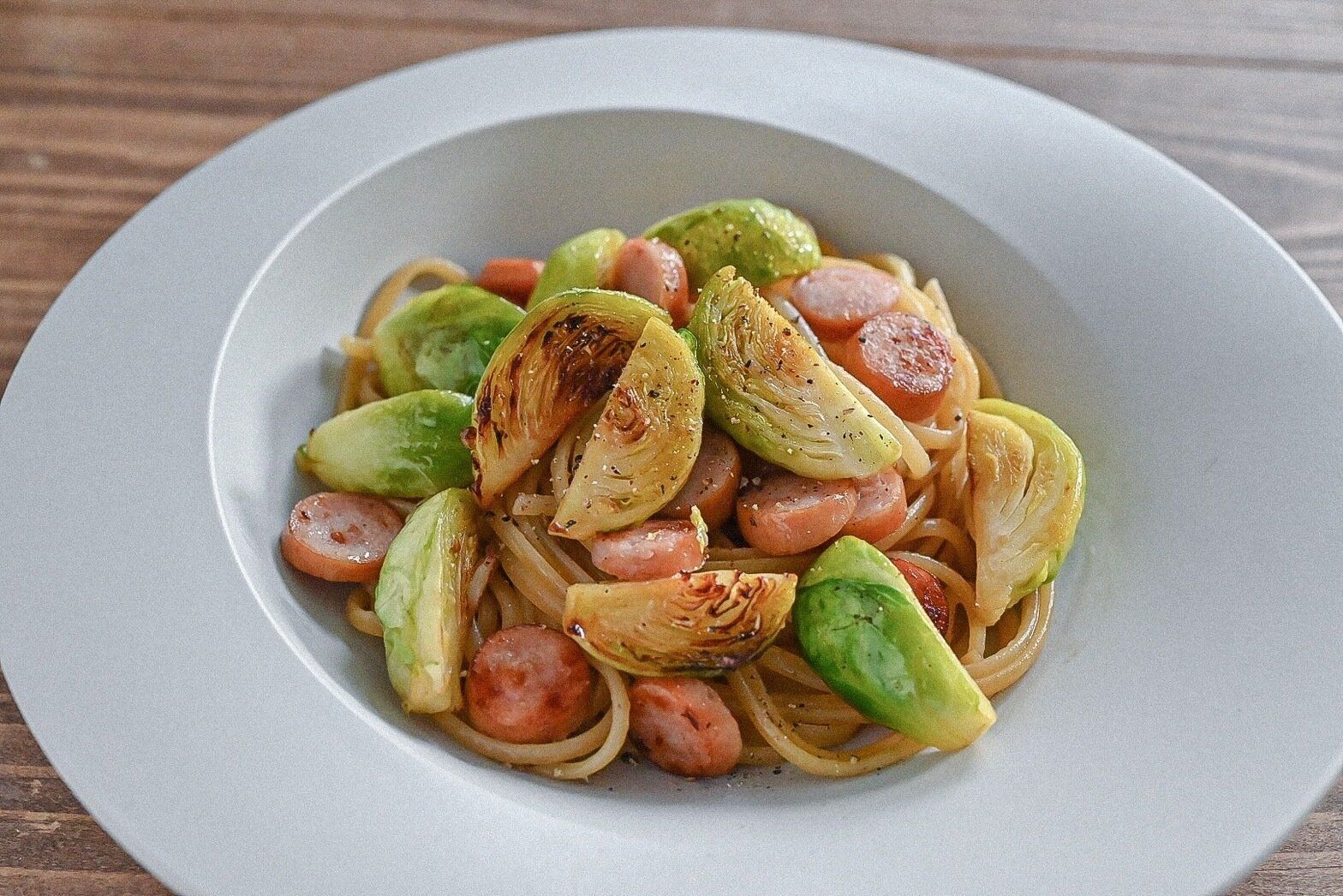 子どもも喜ぶ!芽キャベツとソーセージのパスタ