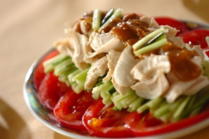 ごまだれの香ばしい香りとまろやかさ、トマトの甘酸っぱい味わいが、食事にアクセントを加えてくれます。きゅうりとトマトで見た目も鮮やかなので、とくに食事全体の色が単調になりそうな時の付け合わせにおすすめです。