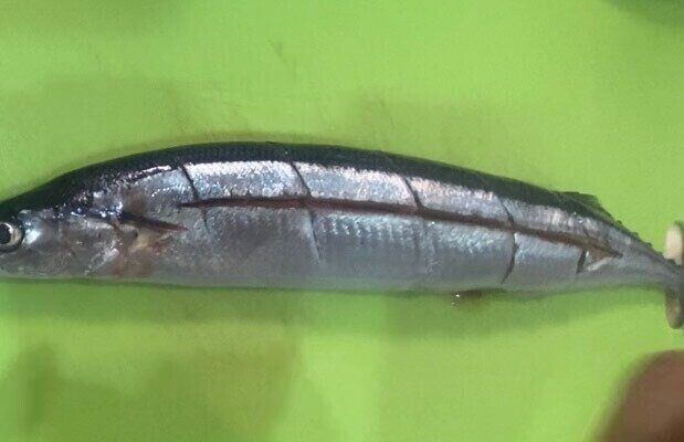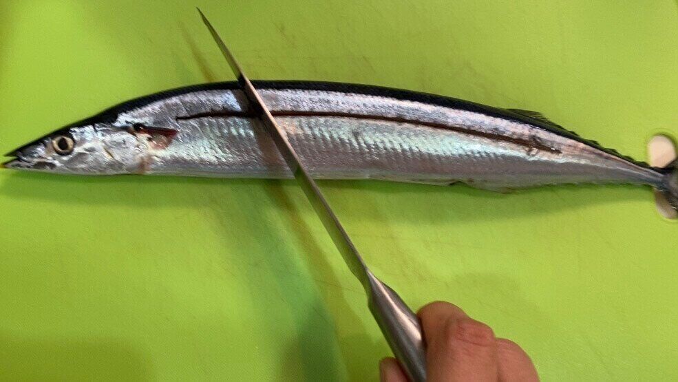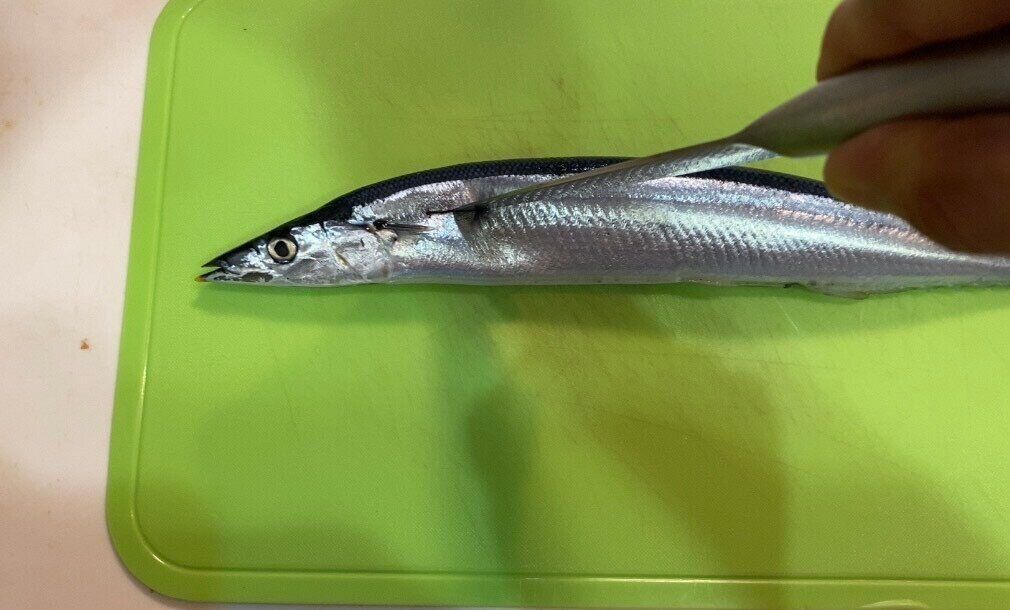 秋刀魚をひっくり返し、同じように切り込みを入れて完成です。