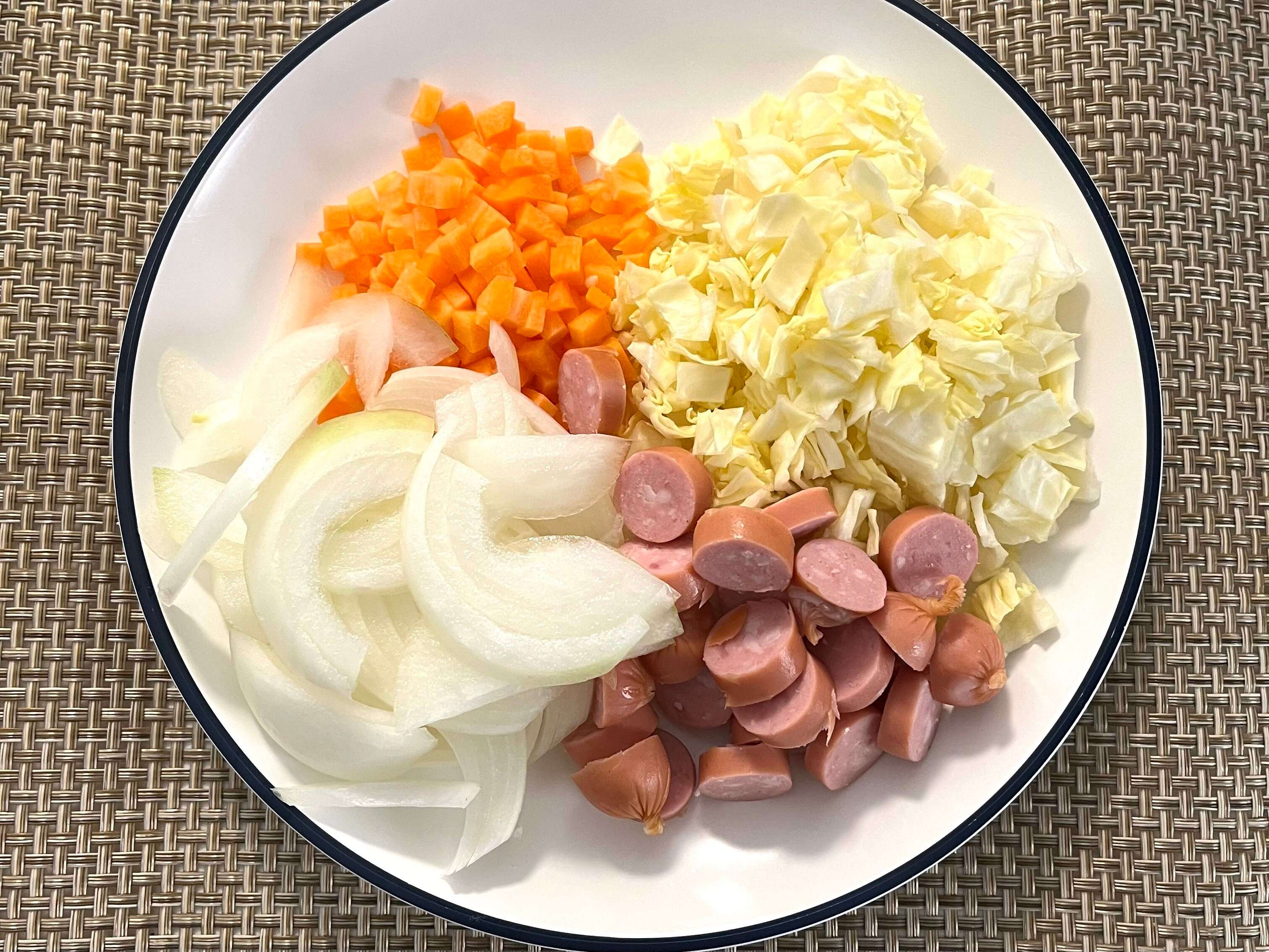 ・具材をお好みのサイズにカットする(わが家の場合は子どもの好みに合わせて小さくカットしています。)