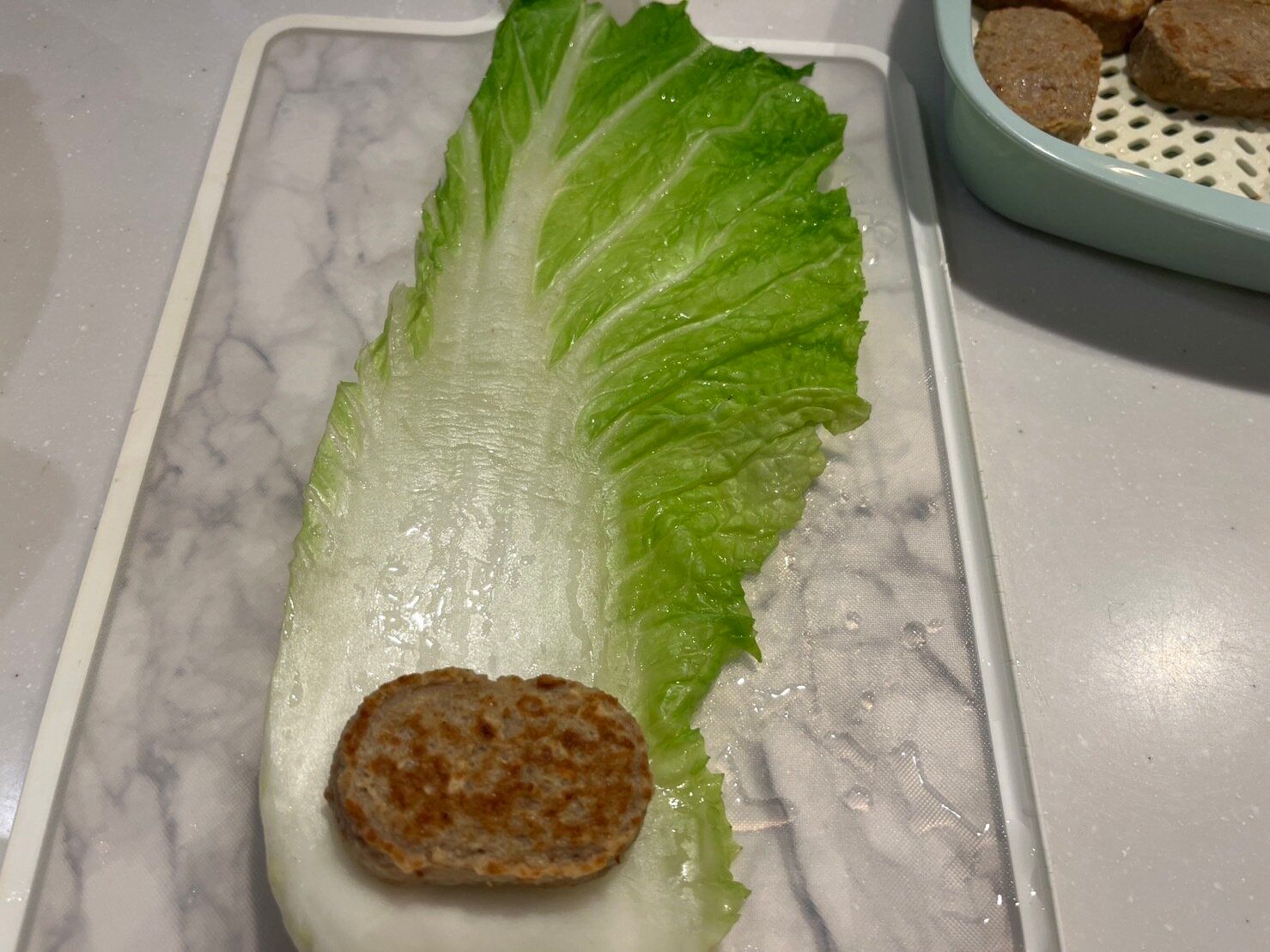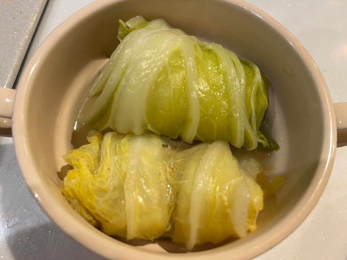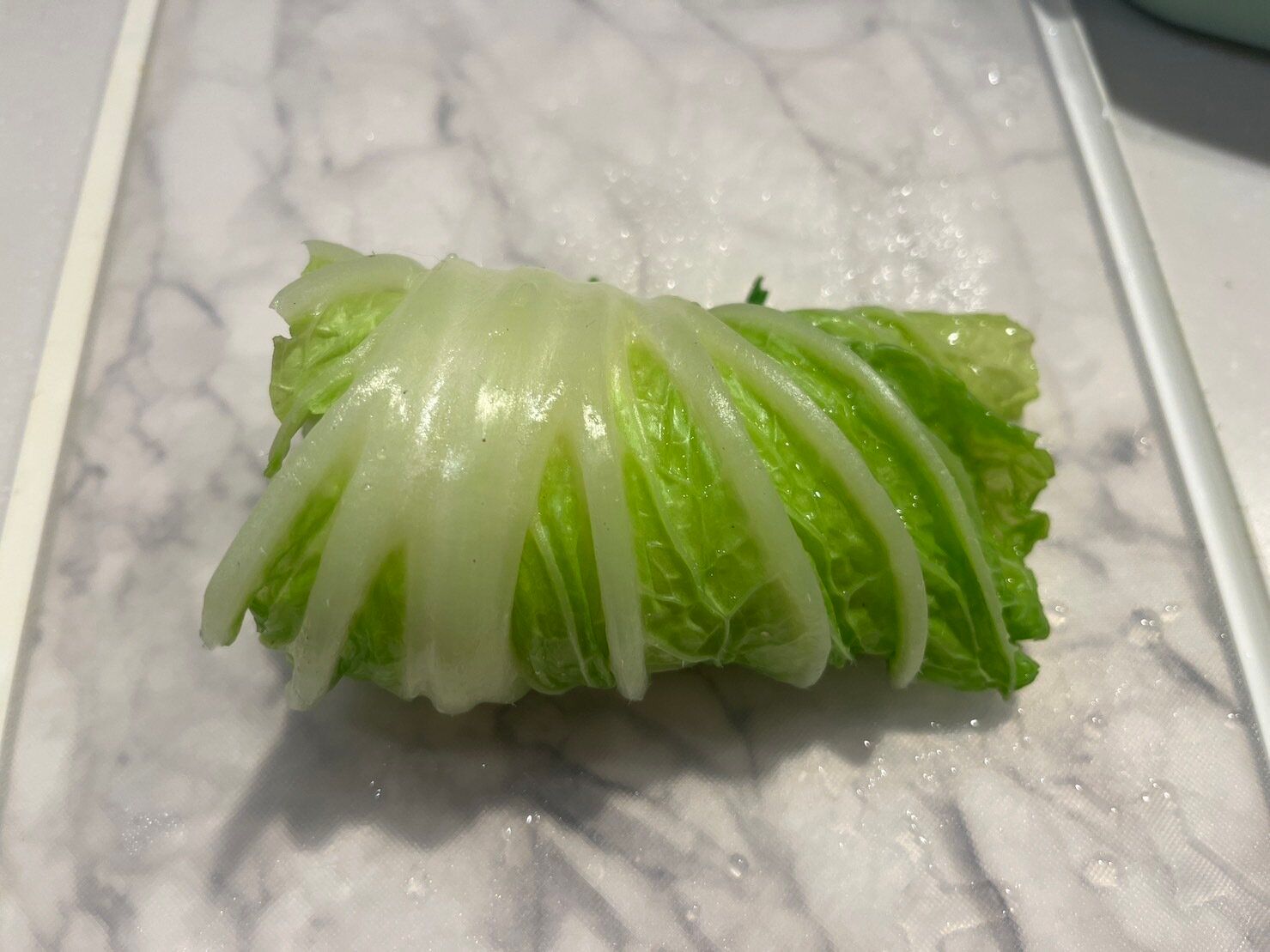ハンバーグが小さいので、それに合わせて白菜は1/4カットのものを使用しました。