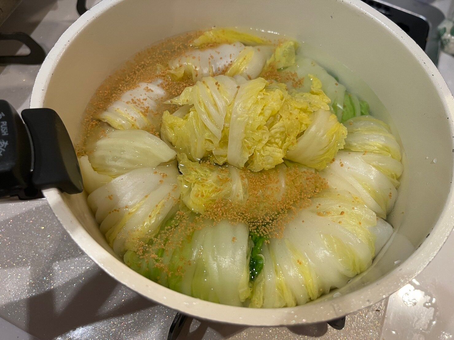 あとは白菜に味が染み込むまで数分煮込むだけで完成です。