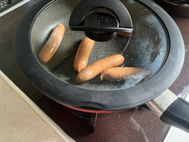 これまでだったら、ウインナーに切り込みを入れ、じっくり皮がパリッとさけるまで焼いていました。