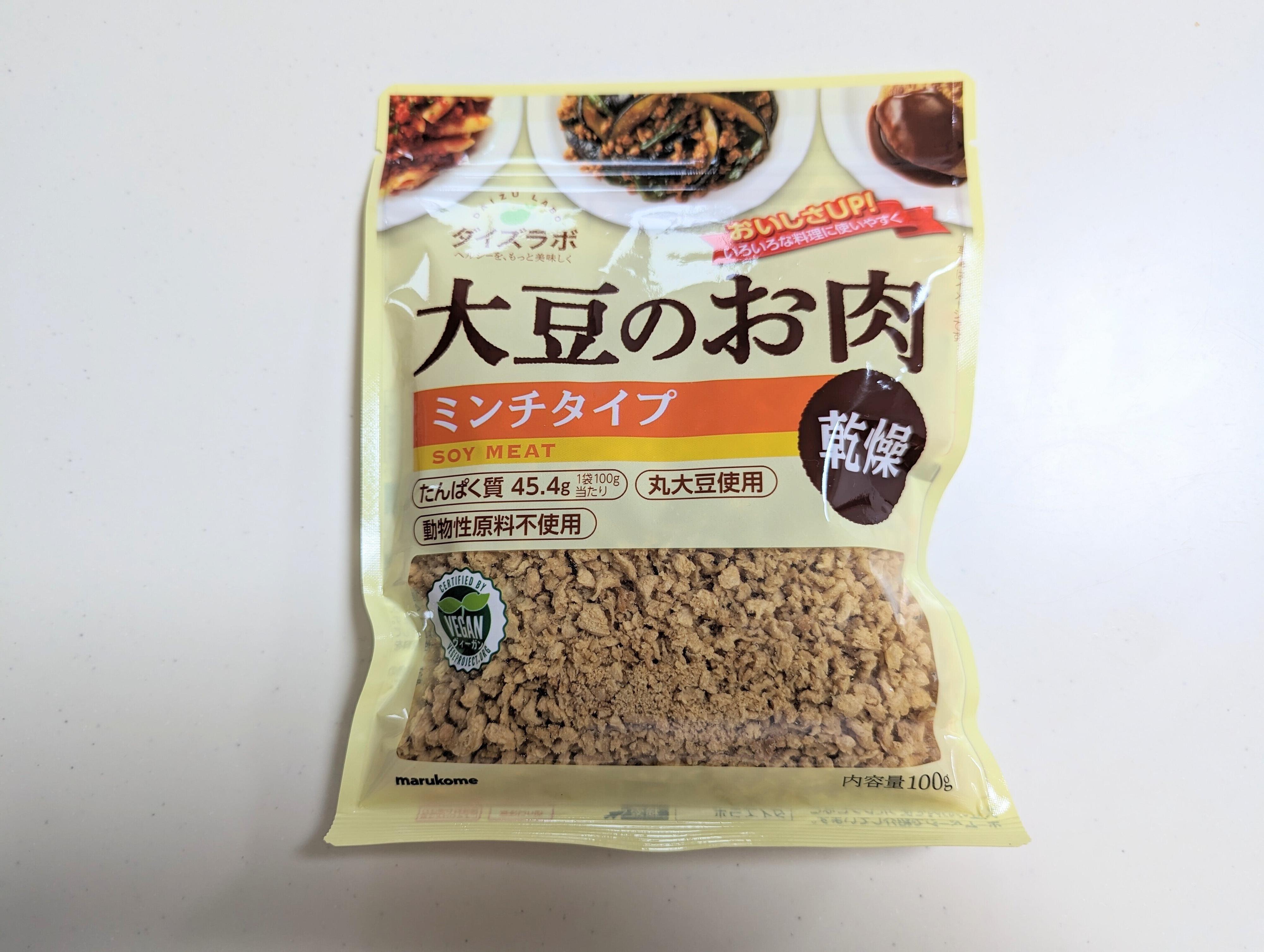 一方、乾燥ミンチタイプの大豆ミートは常温で保存できて、賞味期限が製造日から1年と長いのも助かります(マルコメの『ダイズラボ 大豆のお肉 乾燥ミンチタイプ』の場合)。