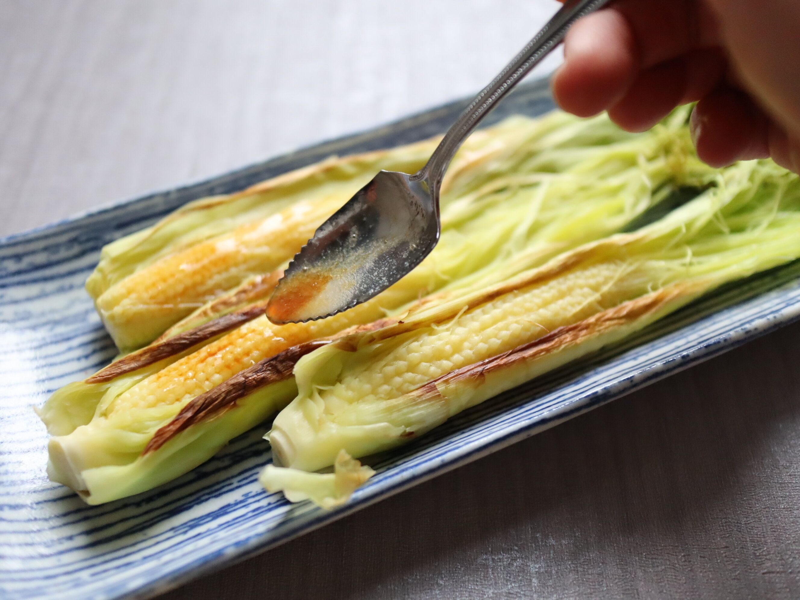 ヤングコーンの丸ごと蒸し焼き〜バター醤油かけ〜
