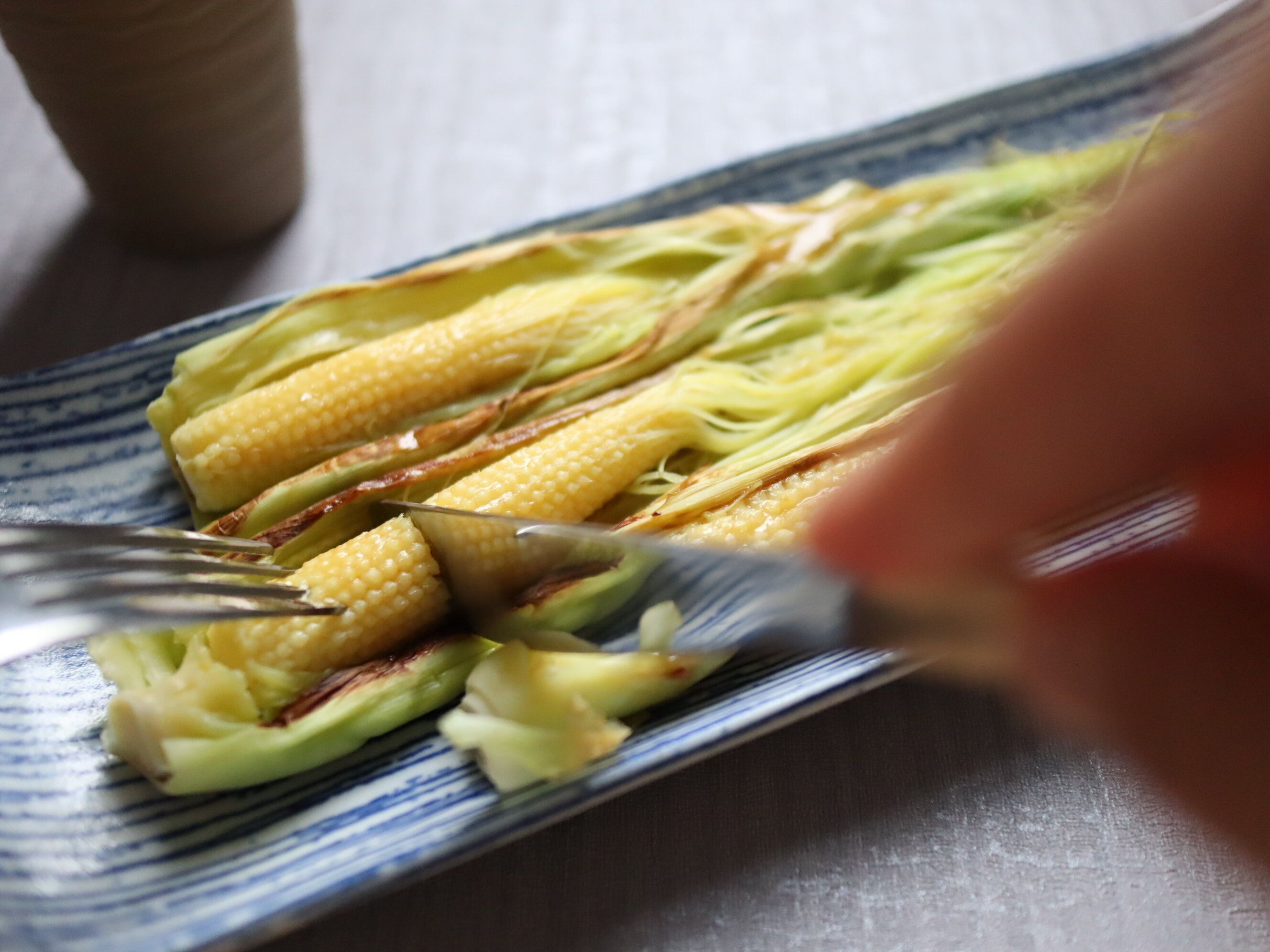 皮の中で蒸し焼きになって甘みがギュッと閉じ込められ、ホックホクに仕上がったヤングコーンをお楽しみください。