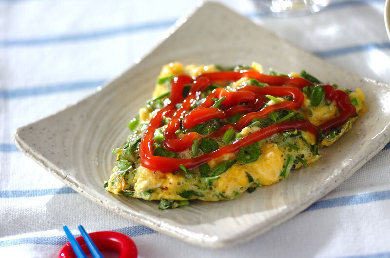 卵の黄色とクレソンの緑が色鮮やかで、食卓に色を加えたいときにも手軽につくれる料理です。卵に入れた粉チーズとケチャップの相性もよく、ご飯のおともとしてもおいしく食べられるでしょう。