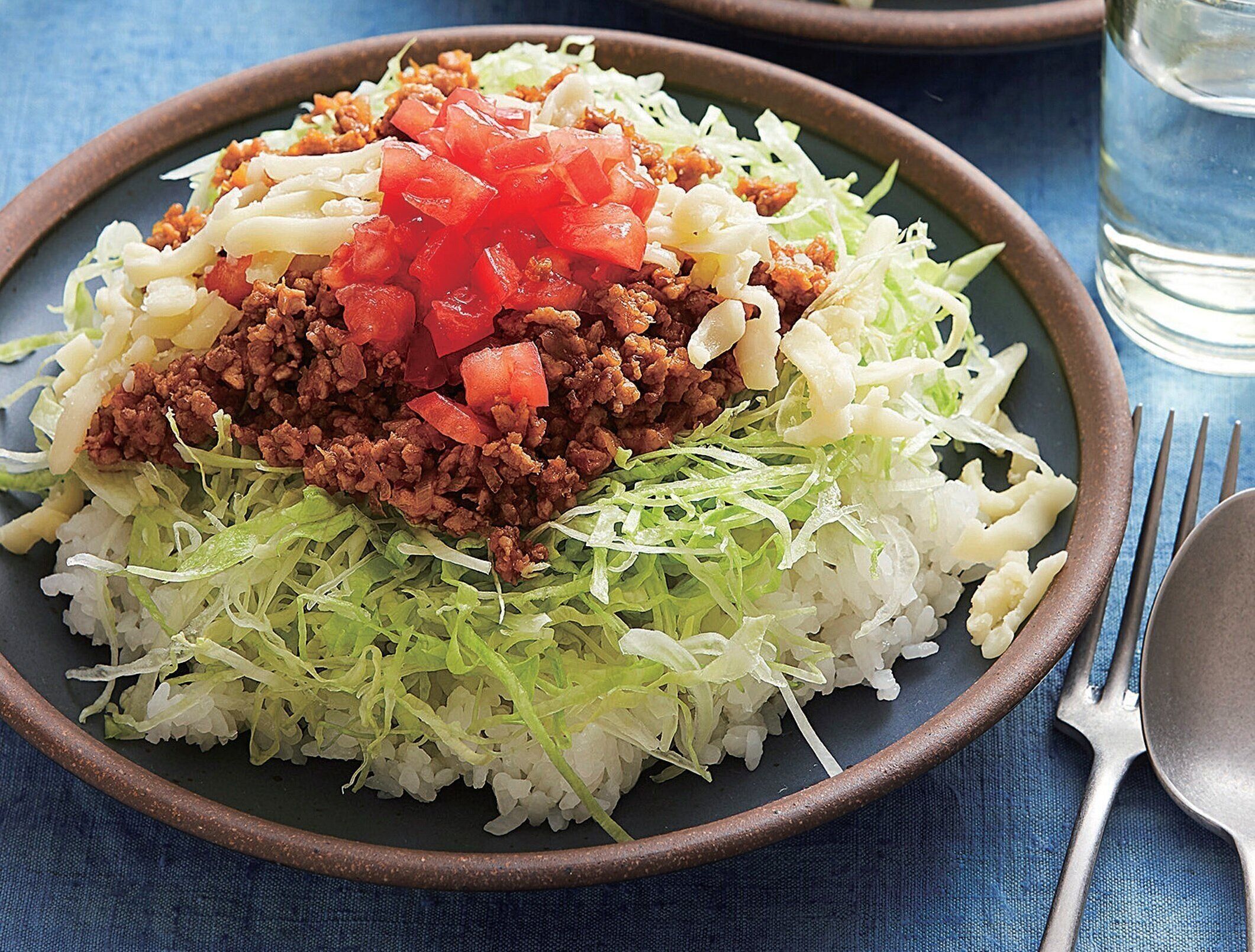 「タコライス」は、ホカホカのご飯の上に千切りにしたレタスをのせ、ピリ辛のひき肉ソースと、ピザ用チーズをかけて作るレシピとなっています。みずみずしいレタスがよいアクセントとなって、ひき肉の油っぽさを和らげてくれるでしょう。