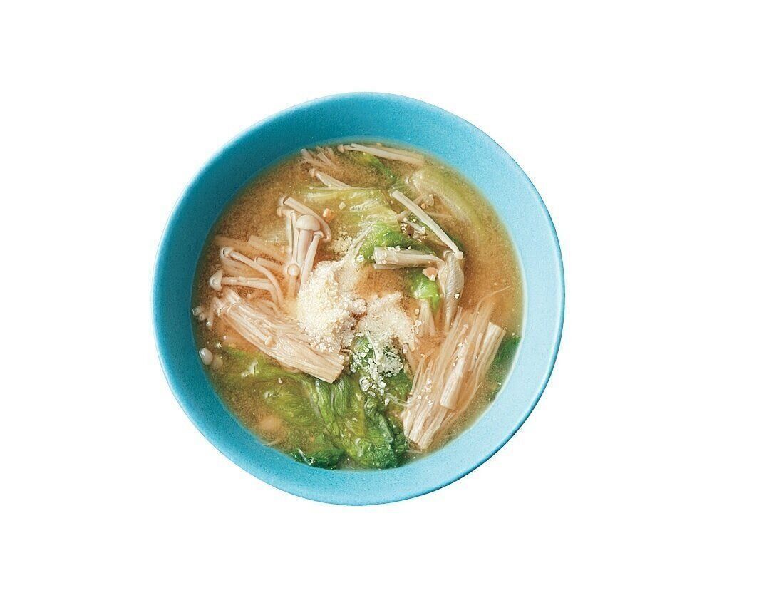 レタスとえのきの異なるシャキシャキ食感を楽しむことができ、いつもとは違ったみそ汁を堪能できます。仕上げに粉チーズを振りかければ、スープのような味わいのみそ汁になるでしょう。