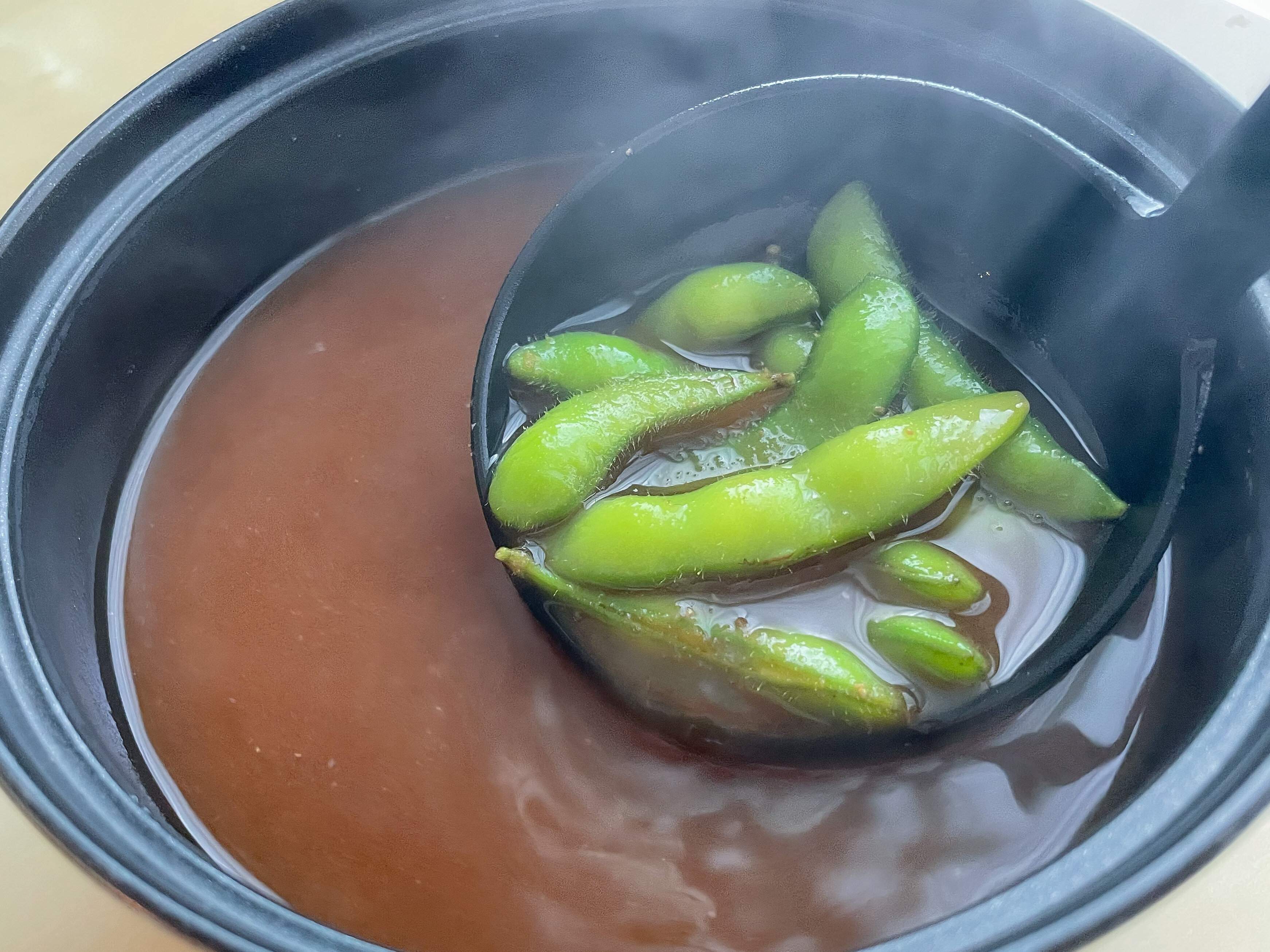具の枝豆は、さやは食べずに中の豆だけを食べます。ほんのり味噌風味がついた豆は、ホクホクでジューシー。プリっとした塩ゆでの枝豆とはまた違う食感が楽しめますよ。
