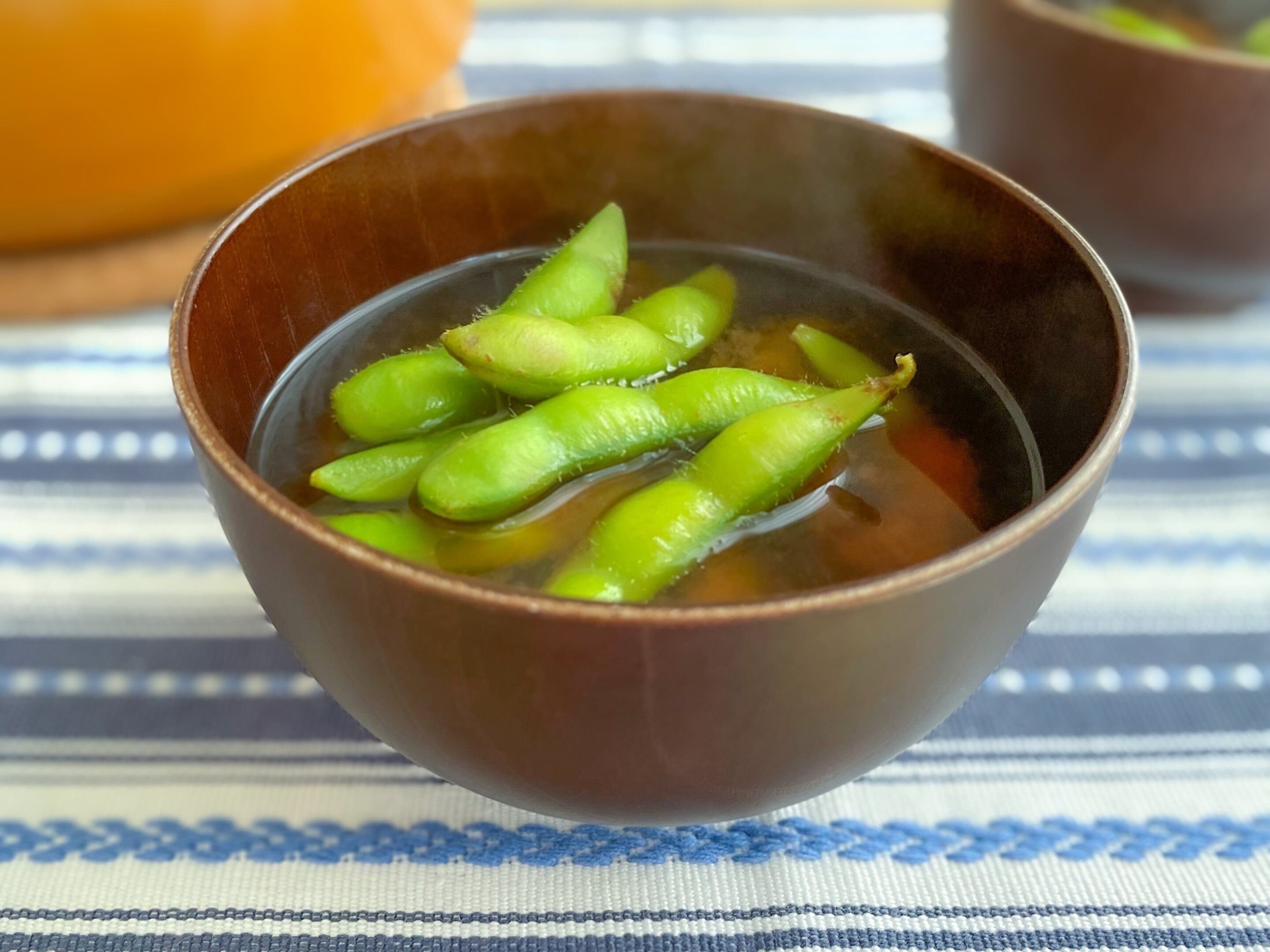 旬の枝豆を買ってきたら、さやごとお味噌汁にしておいしさも栄養も、丸ごと味わってみてください。