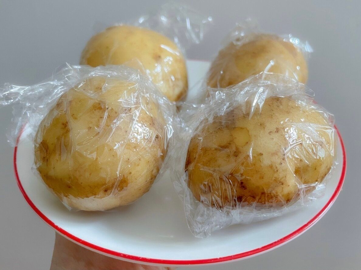(1) じゃがいもをよく水洗いし、汚れや土を落としておく。(水分は残ったままでOK)
