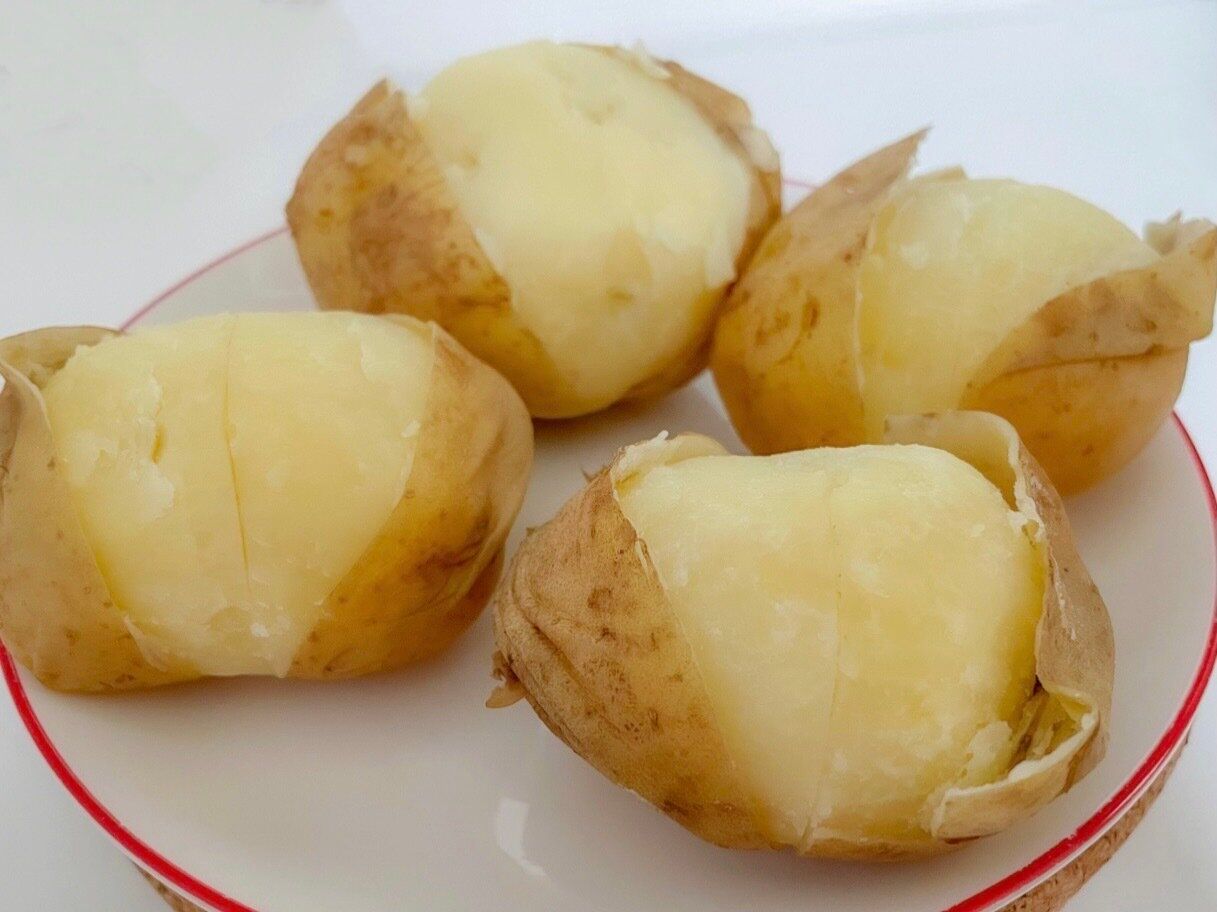 芽や変色している部分を取り除き、マッシュしてサラダなどのお料理へ使います。じゃがバターなら、このままバターをのせていただくのも良いですね!