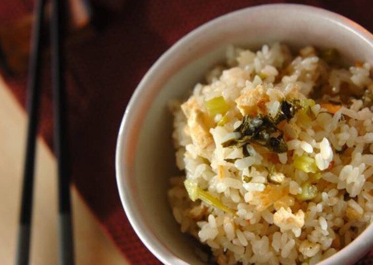 お米と大根の葉、油揚げを使った素材の風味を味わえるご飯ものレシピ。炊飯器に入れて炊くだけ、という手順もシンプルで、和食のおかずとの相性も◎です!大根の葉のシャキシャキ食感も楽しく、油揚げは味が染みて旨みアップ。お好みでにんじんを入れてもおいしいですよ。