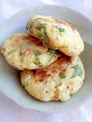 お子さんのおやつにピッタリな大根の葉を使ったおやきです。桜えびの甘みとチーズの塩気がマッチして、いくらでも食べられます。食材をフライパンでサッと焼くだけの簡単レシピなので、大人のおつまみとしてもおすすめです。