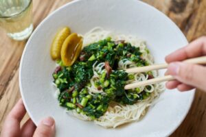 ニラとニンジンのゴマチヂミ