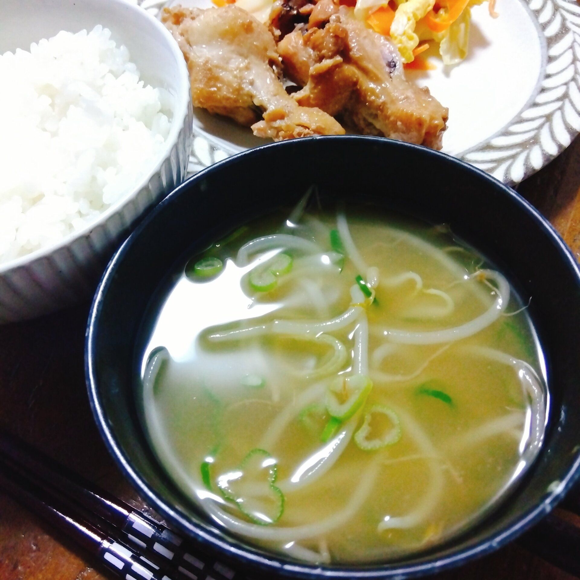 「もやし」と「カットねぎ」のみそ汁