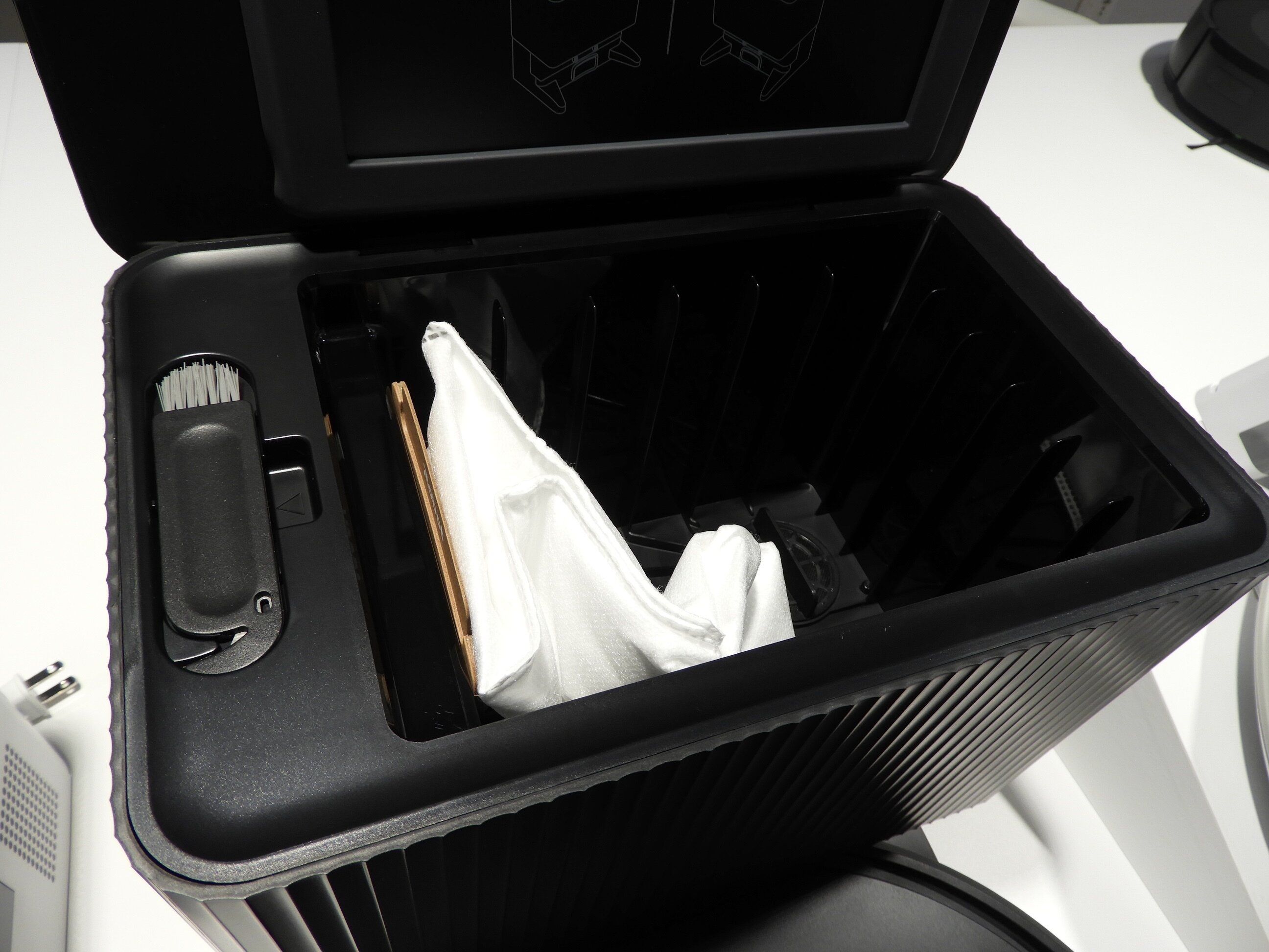紙パックを取り出すときに、ゴミが散らばらないようすぐフタをするデザインの紙パックは、ルンバオリジナルアイテムです。