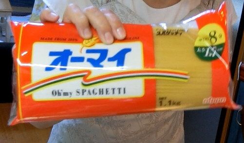 メインの食材は、上で紹介した大粒エビと、番組で紹介したオーマイのスパゲッティです。オーマイスパゲッティとOKのコラボ商品で、OKでのみ内容量が少し多い「1.1kg」のものが買えます。あとは、下の写真のOKのたらこです。