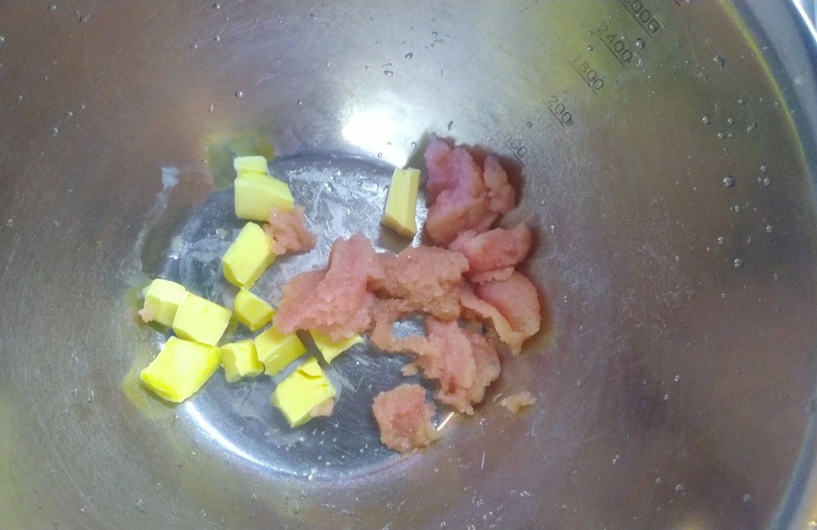 バターと、皮を外したたらこをボールに入れる。