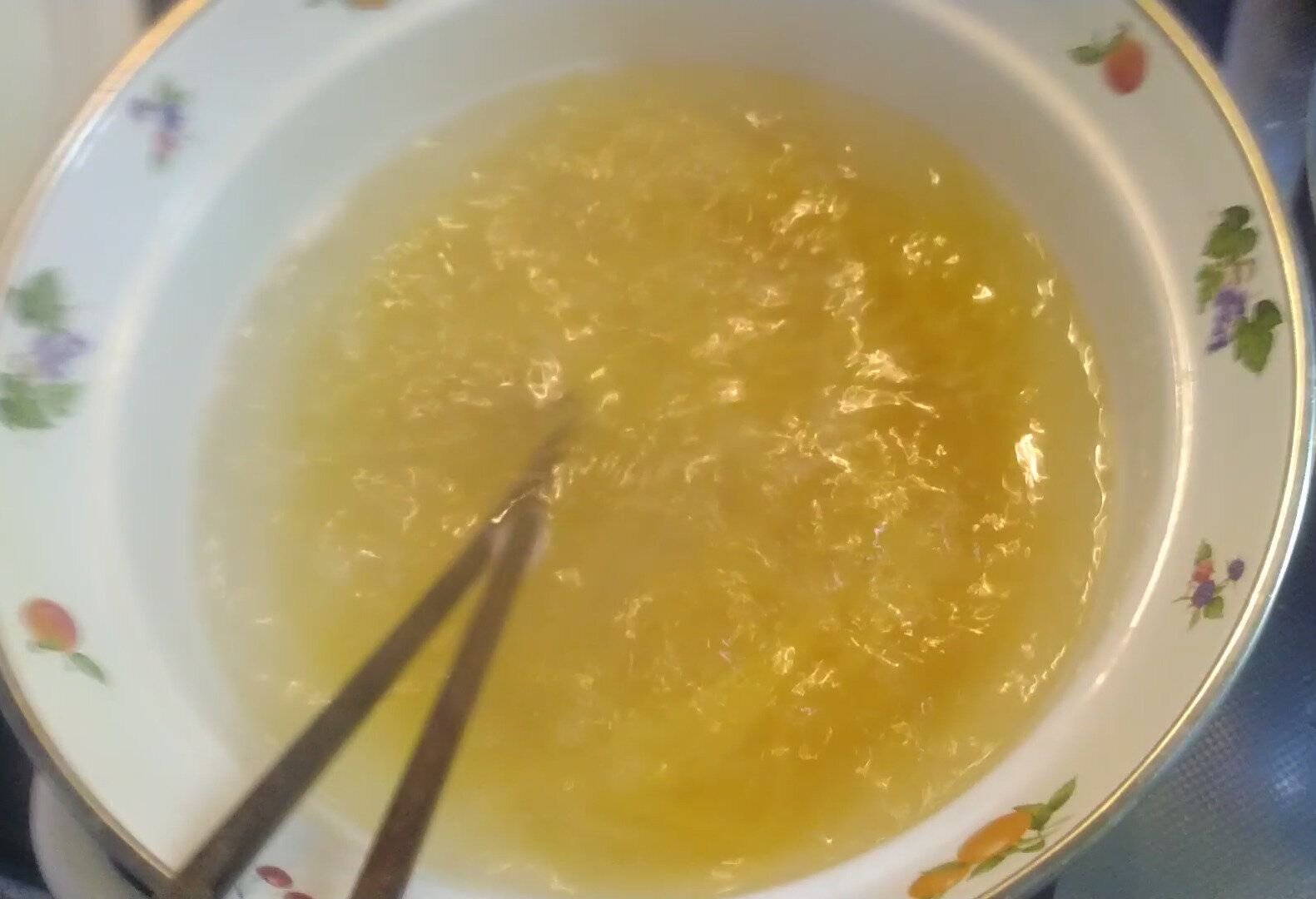 このゆで汁をお玉1杯、たらこ&バターのボールに入れる。