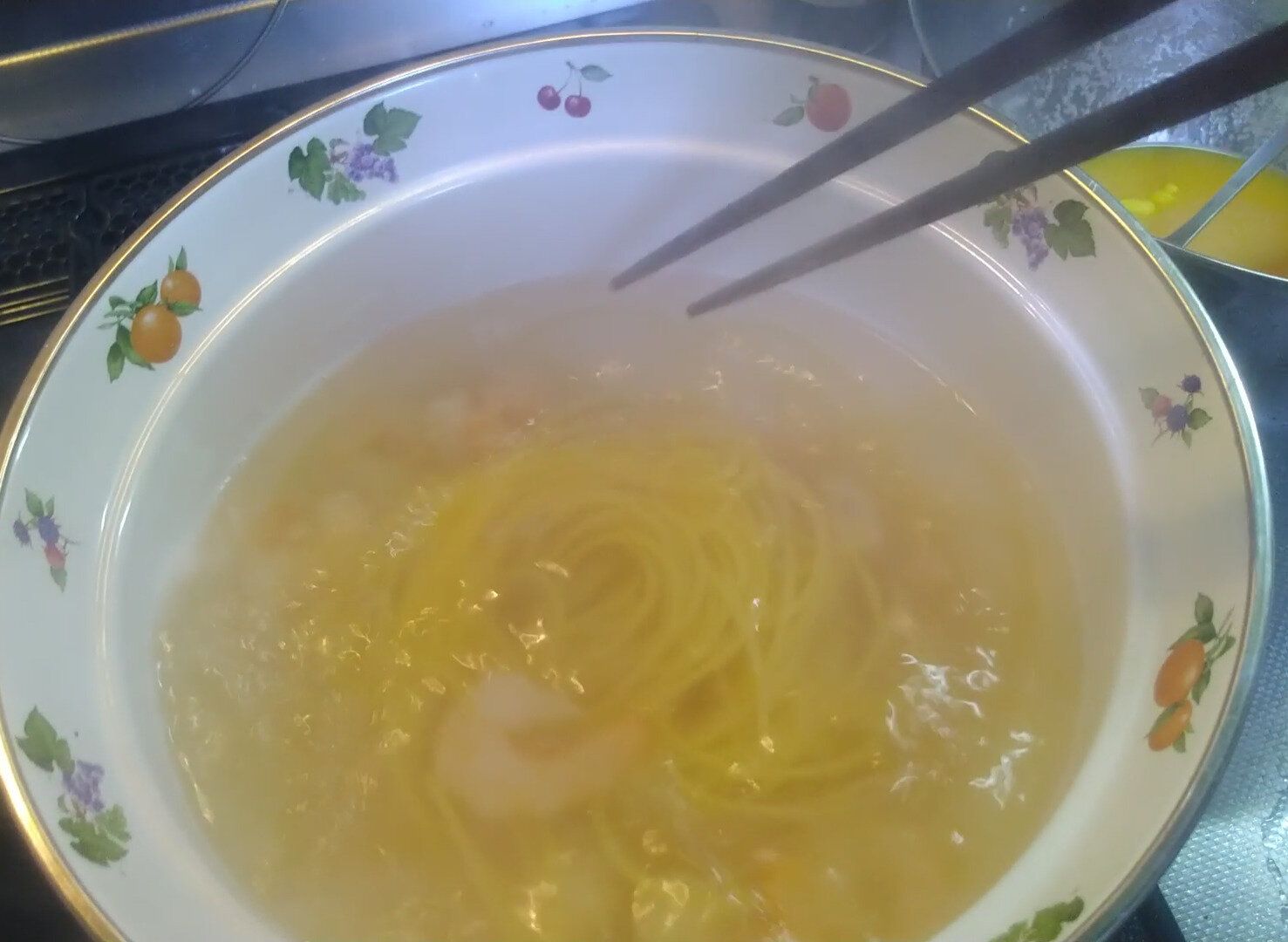 お湯が沸いたらスパゲッティを投入!