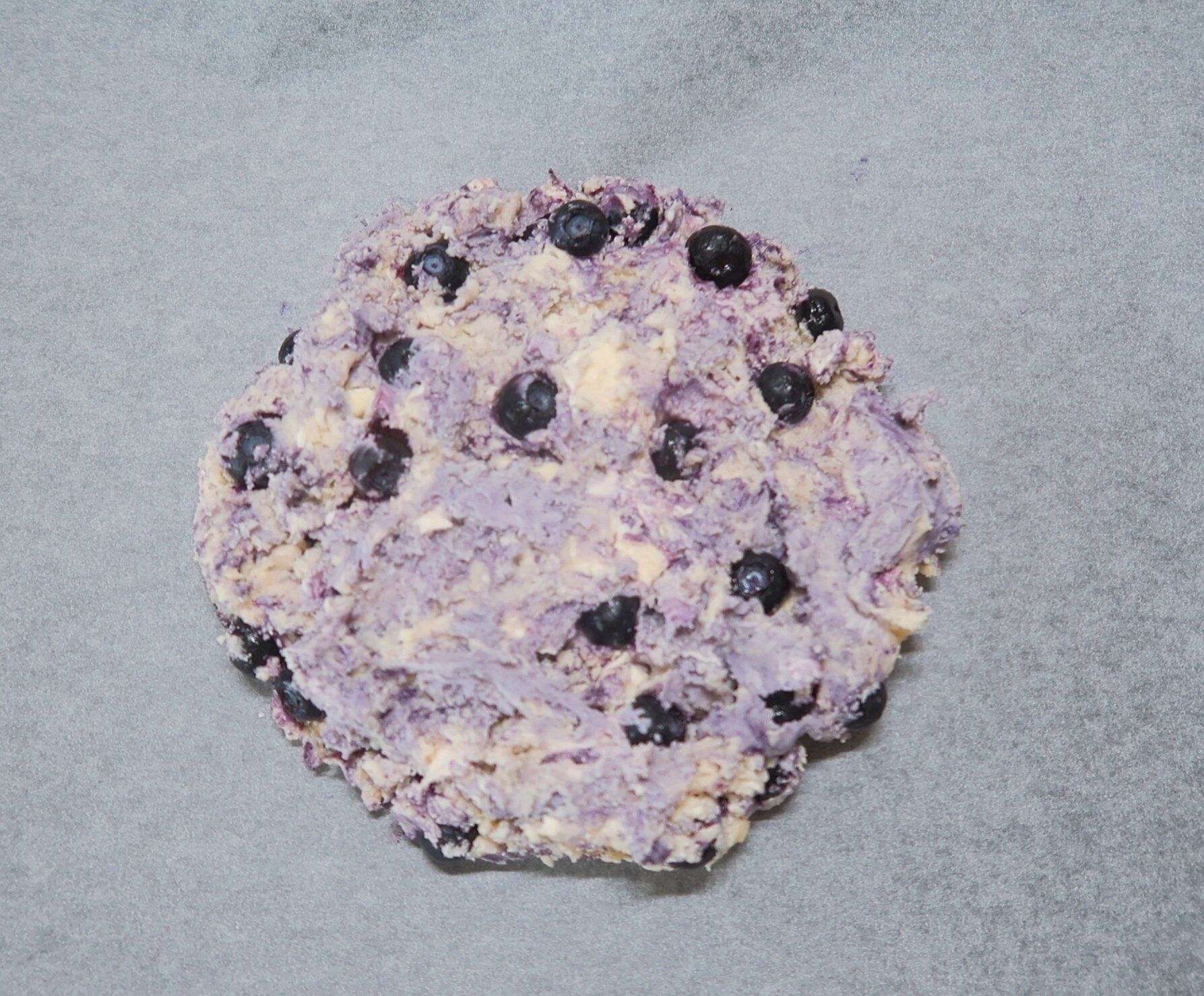 生地をひとまとまりにしてクッキングシートにのせ、約2cm厚さの丸型に整えます。