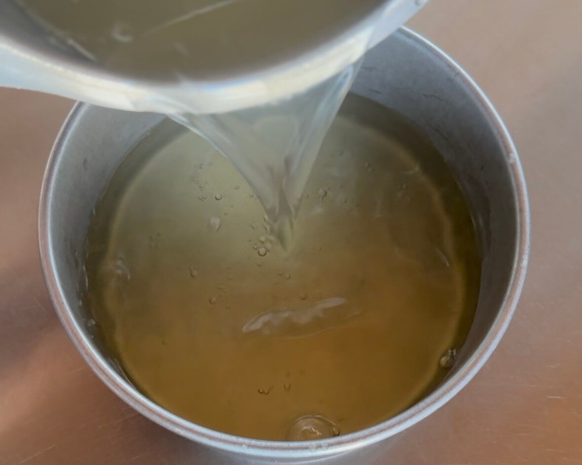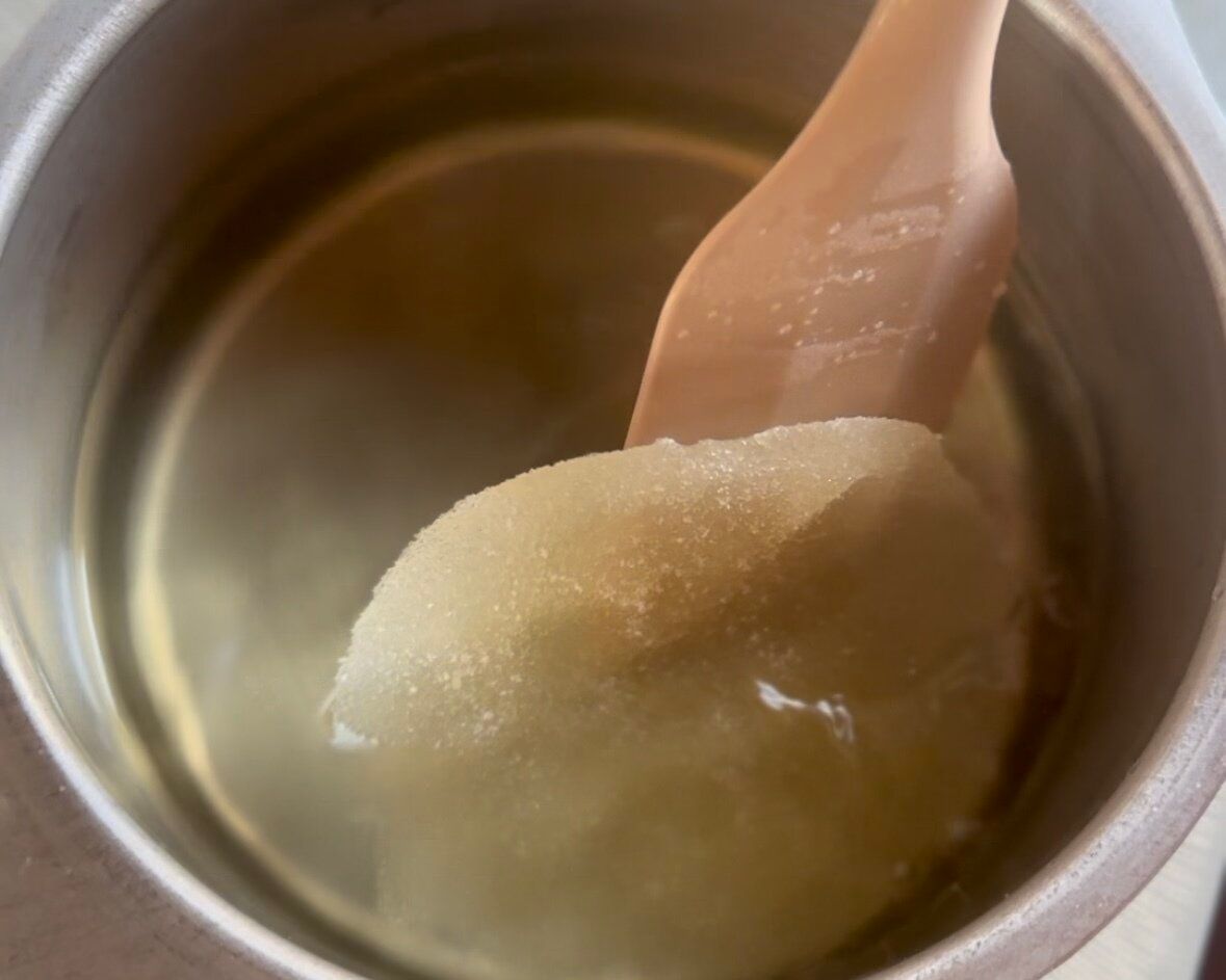 3.鍋に水(300ml)を入れ、沸騰直前で火を止めて砂糖、はちみつを入れ、混ぜて溶かす。5分ほどそのままにして粗熱を取る