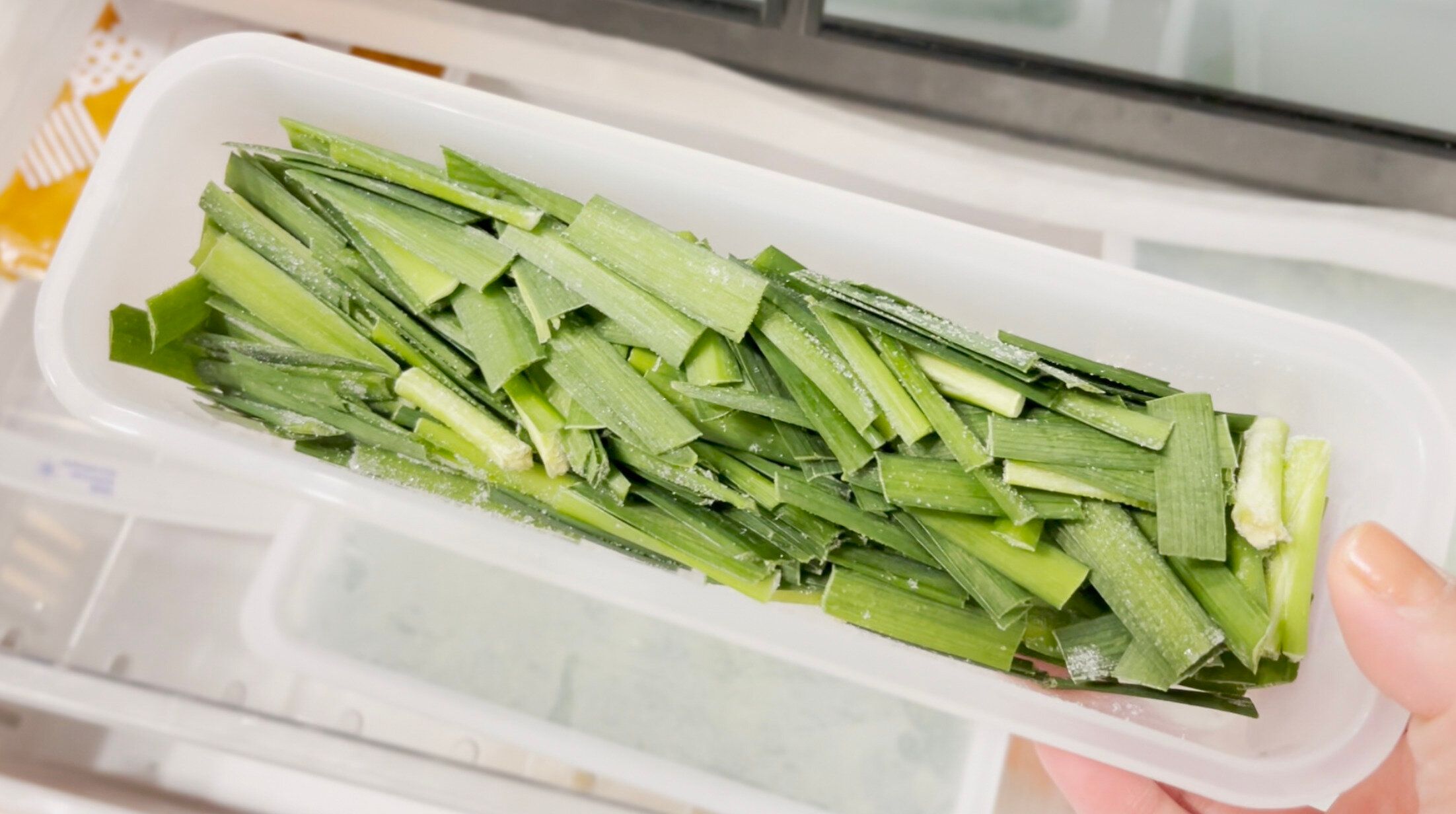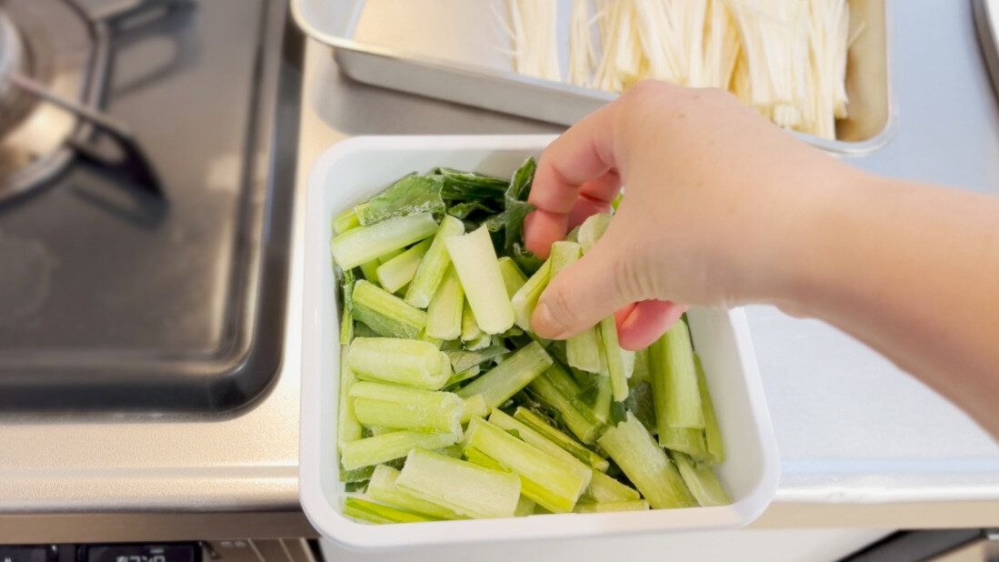 ニラは5cm長さにカットし、冷凍しておけば炒め物にすぐに使えます。