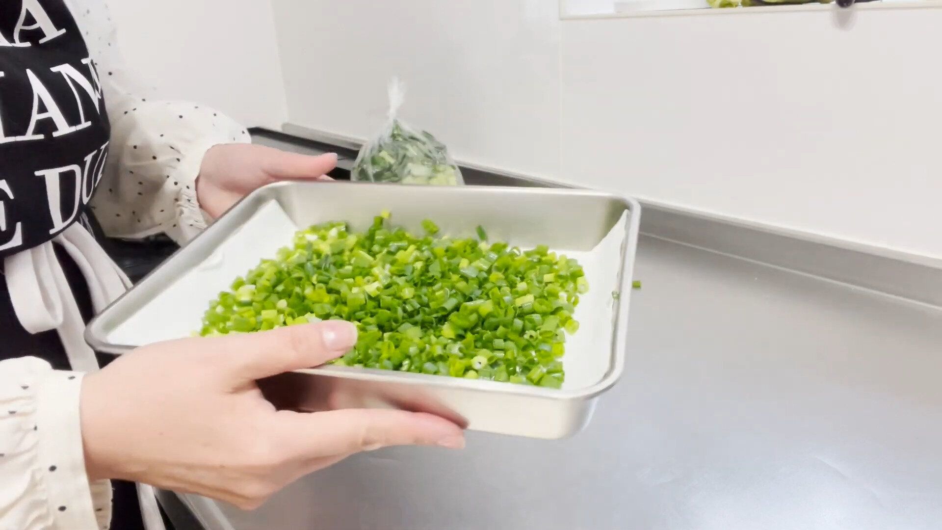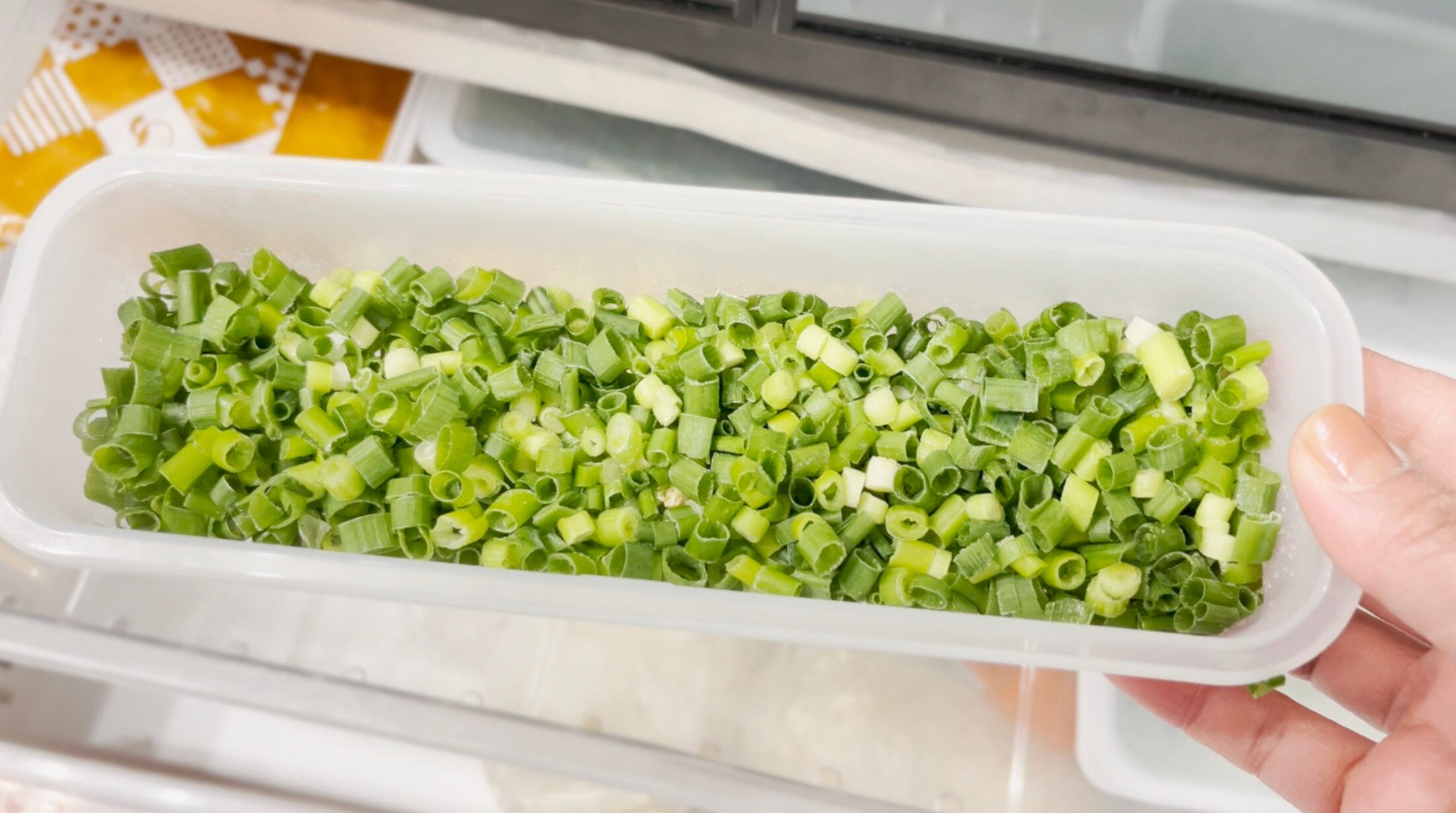 青ネギをまとめて小口切りにし、薬味用に冷凍保存しています。麺類や汁物にトッピング、溶き卵に混ぜて色どりの良いネギ入りの卵焼きにしたり、そのまま冷奴にのせたり。