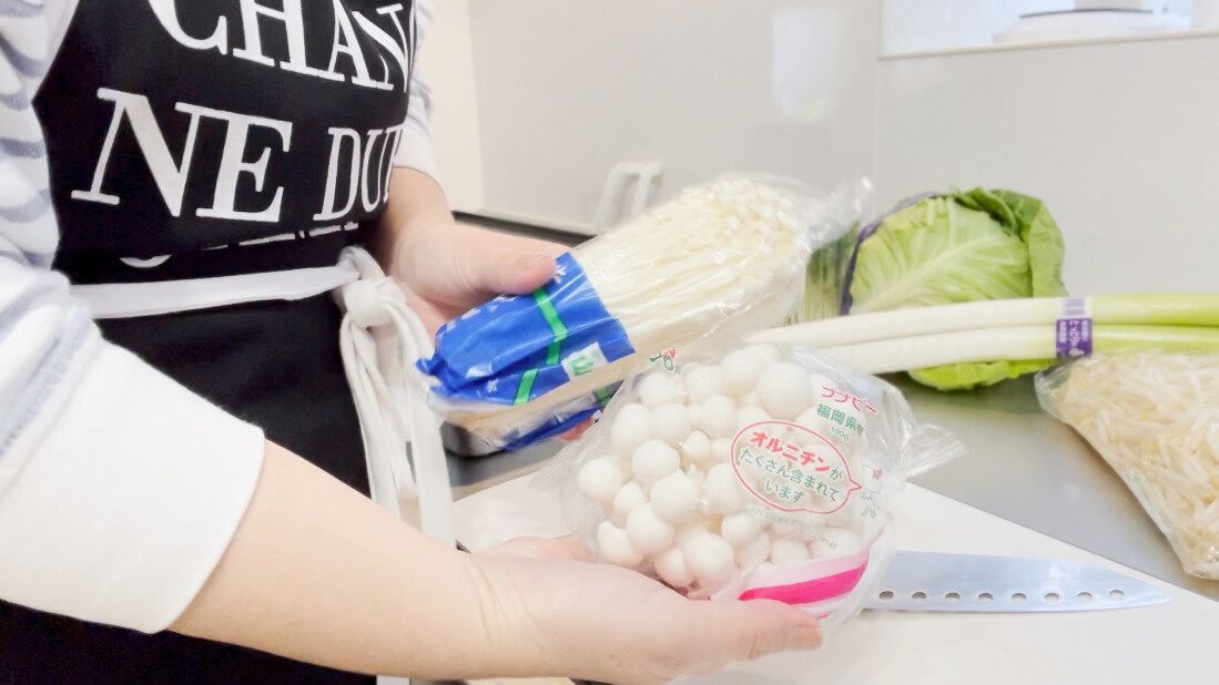 石づきなど固い部分を切り落とし、小房に分けて冷凍します。いろんな種類をミックスしておくとそれぞれの食感を楽しめるので、わがやではいつも2~3種類のきのこを混ぜて冷凍していますよ。