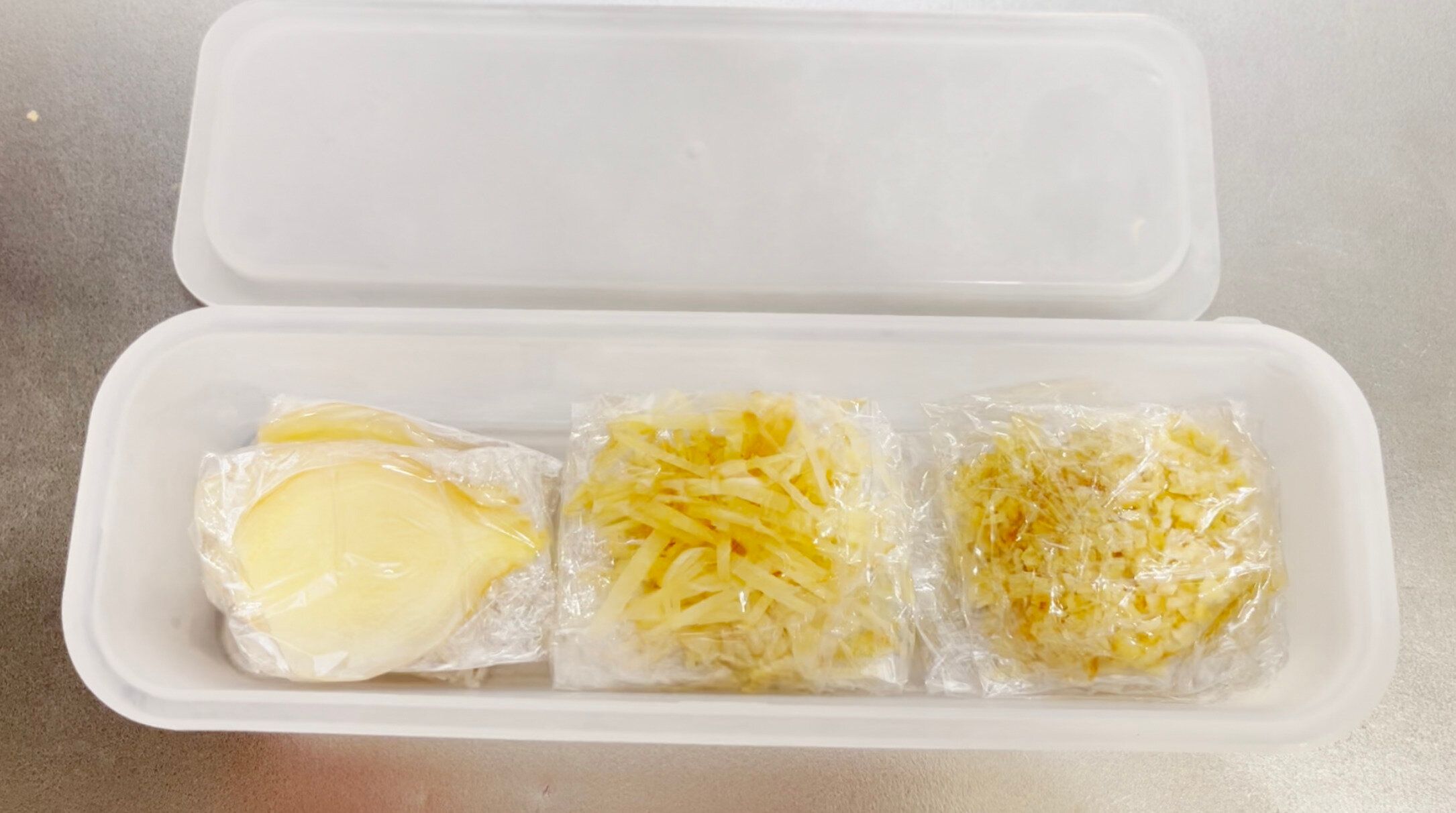 しょうがはあらかじめ用途に合わせてカットし冷凍保存しておけばムダなく使い切れます。みじん切り、輪切り、千切りなどいろんな方法でカットしておくと重宝しますよ。