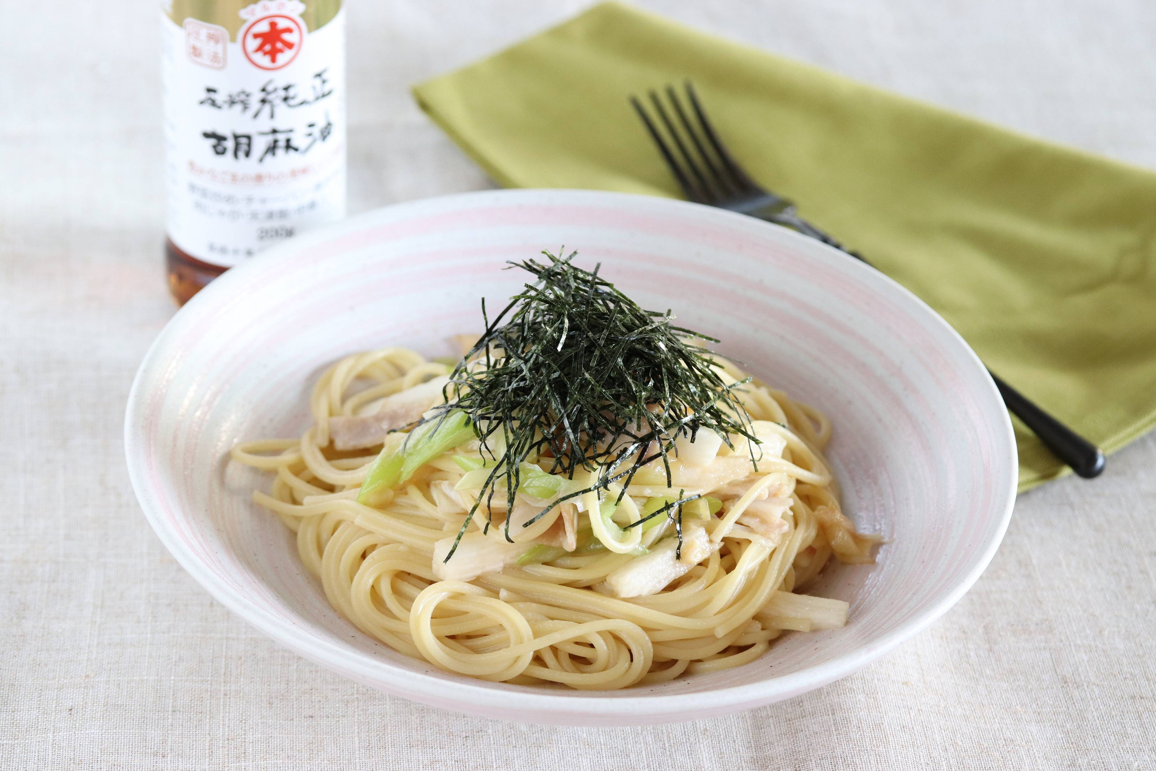●食べる直前にごま油を回しかけることで、いっそう美味しい和風パスタになりますよ!