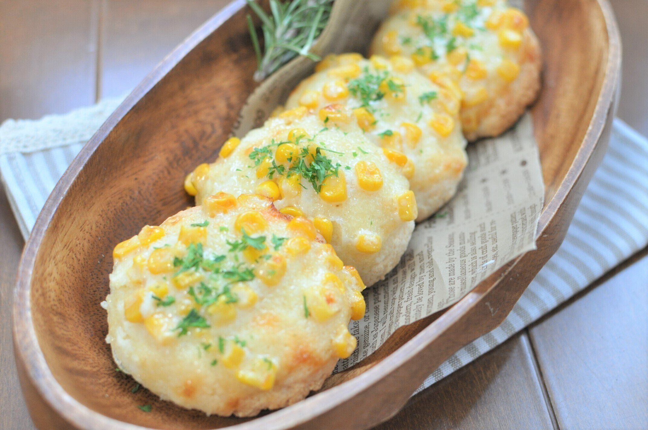 手のひらサイズのちょっぴり小さめのパンができますよ。マヨネーズがジュワっととけて美味しそうに焼きあがります。