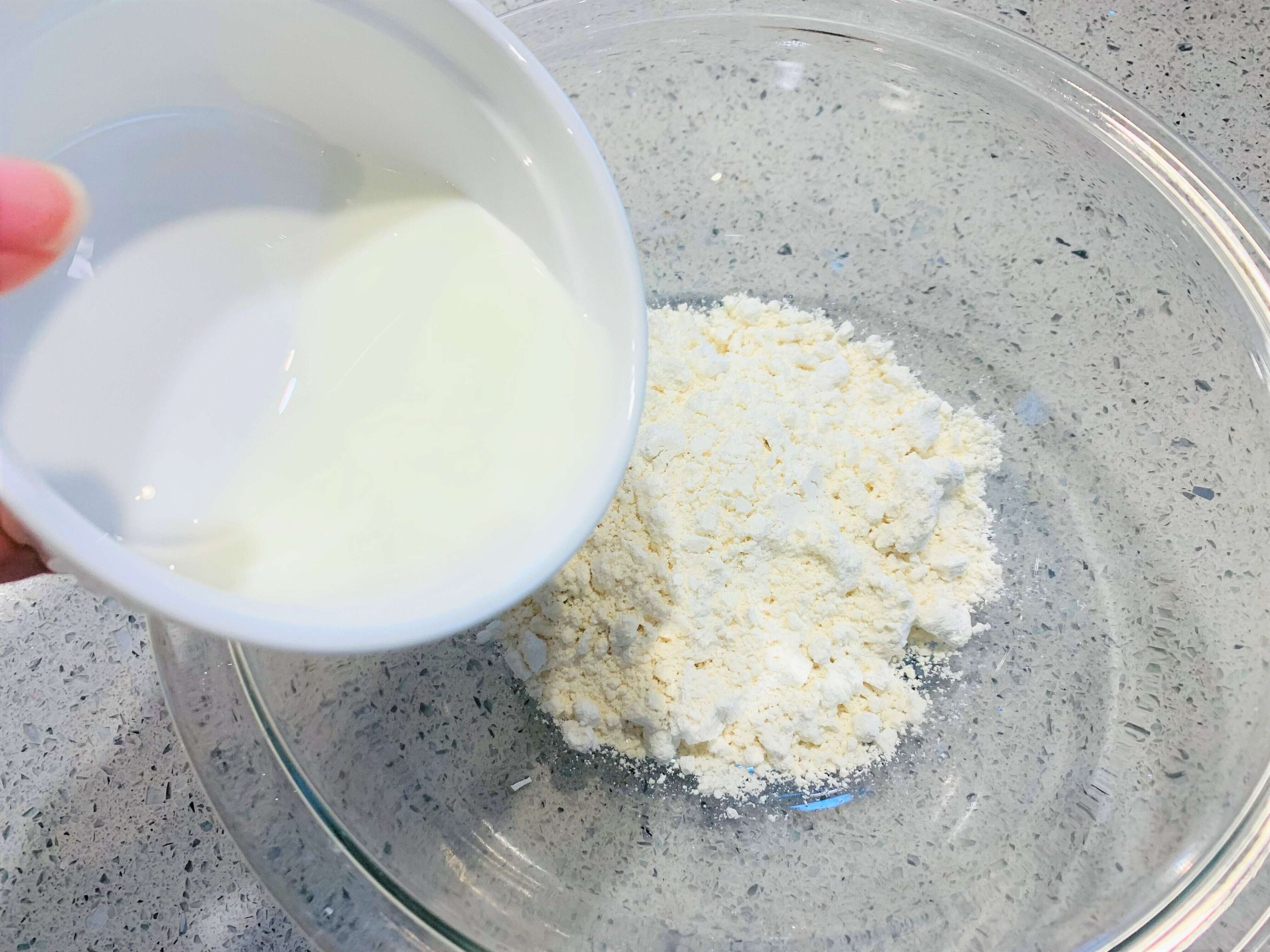 ホットケーキミックスと牛乳を合わせます。
