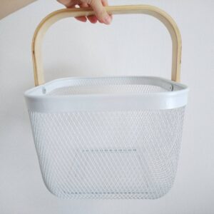 わが家はシンプルなものがよかったので本体ハンドルをニトリのものに替えていて、中身も100均の箱に入れ替えて使用しています。