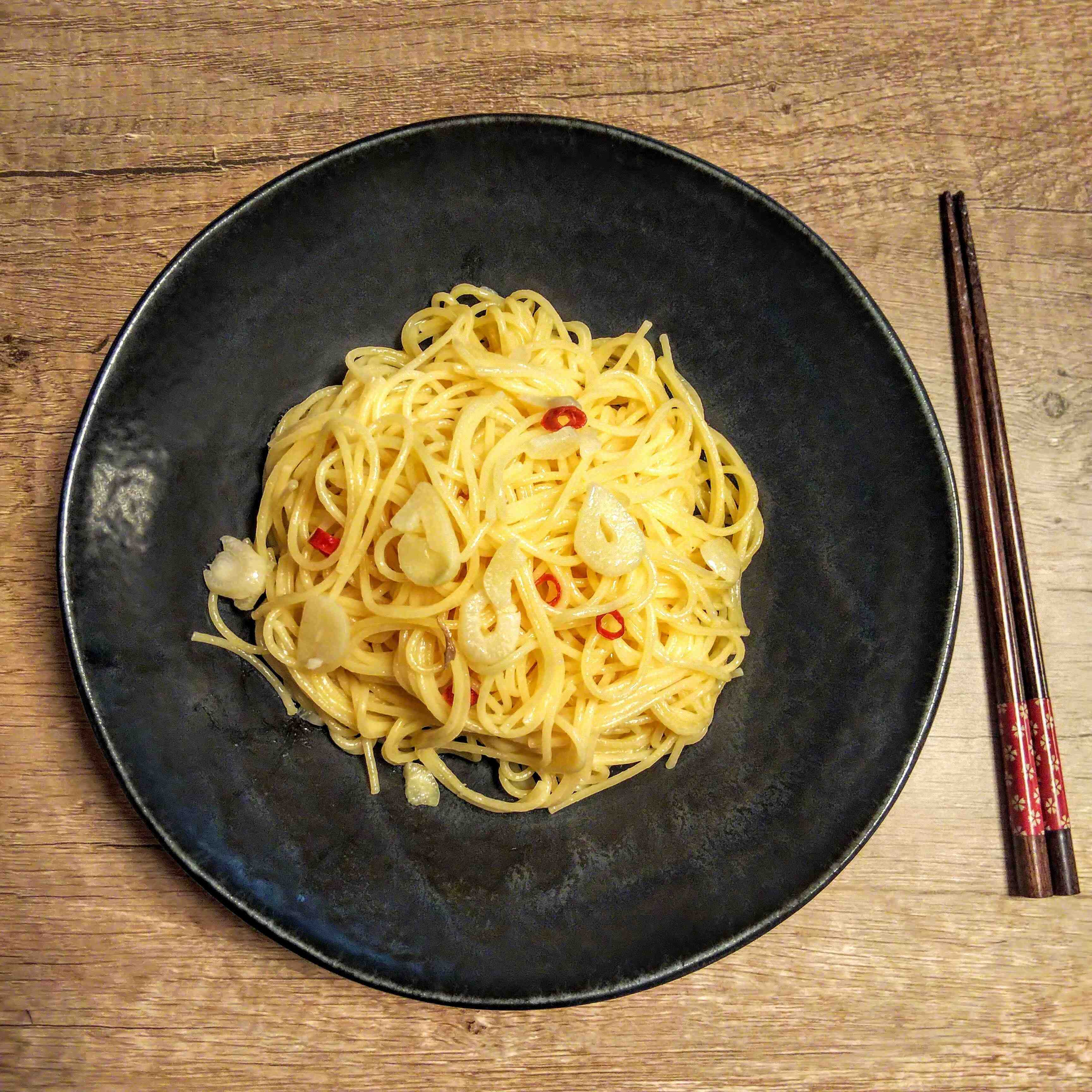 (基本材料がパスタ、にんにく、鷹の爪の3つだけなので、アレンジしやすいです)