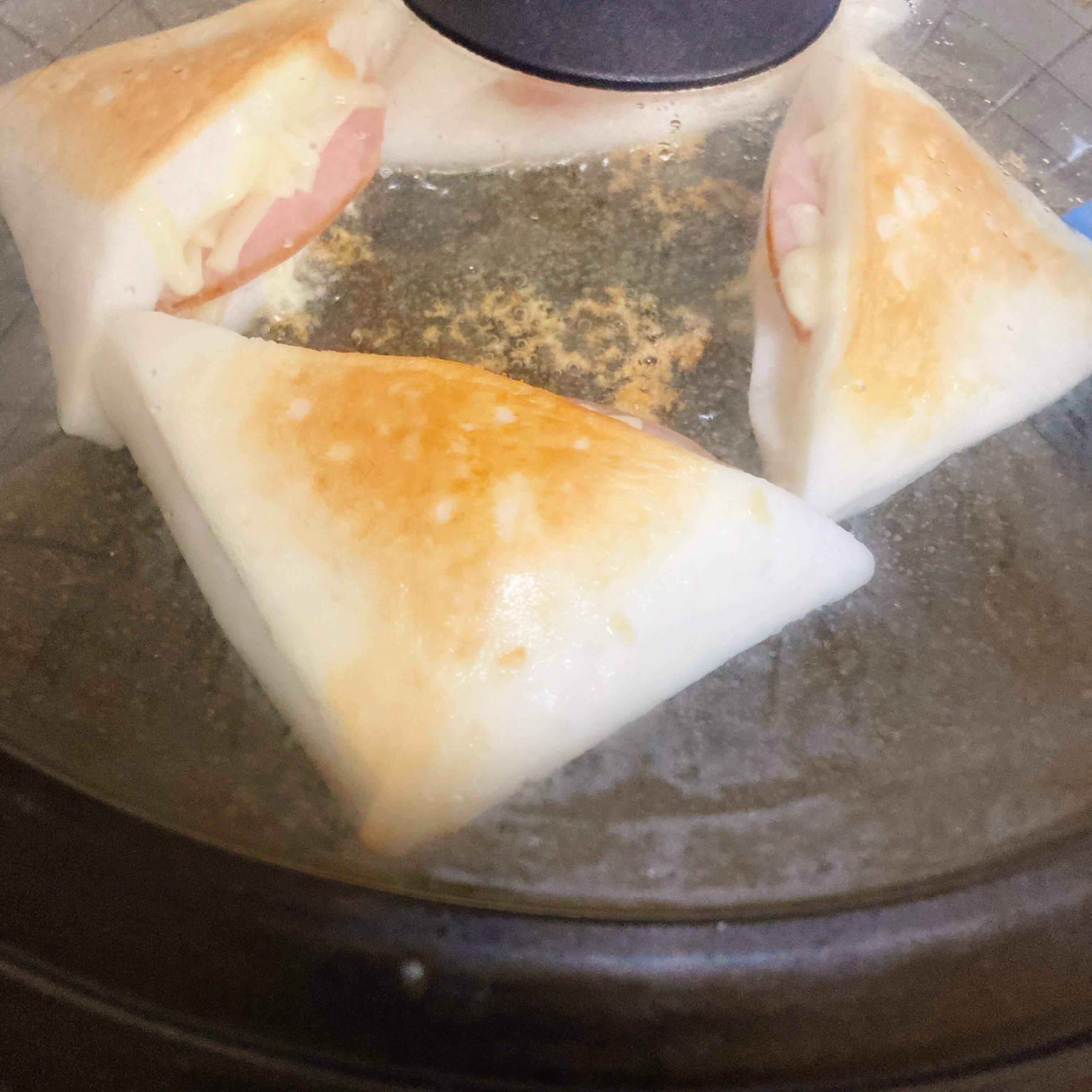 フライパンに油をしいて中火ではんぺんを焼き、ひっくり返したらフタをしてチーズがとろけるまで1分ほど焼く。