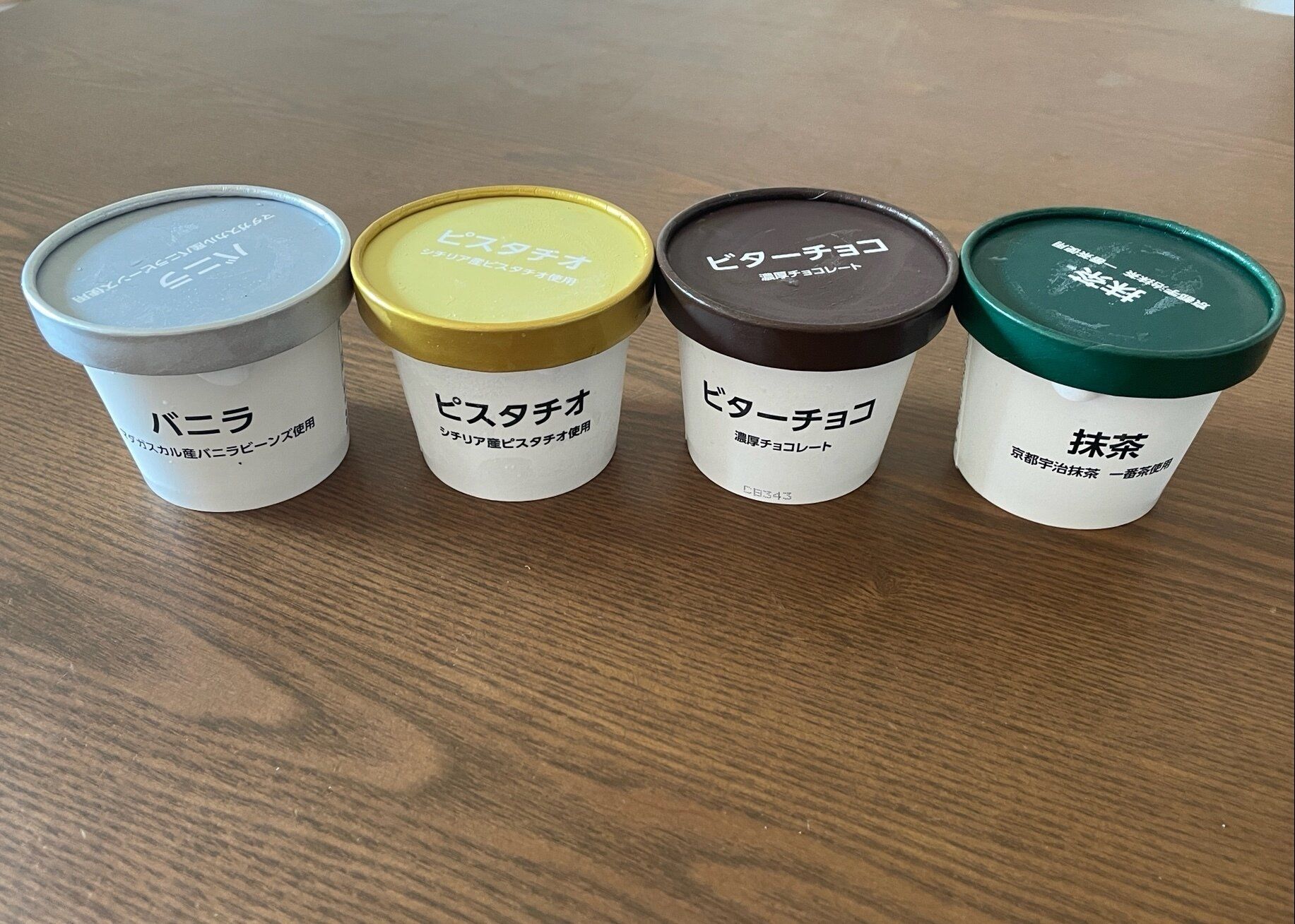 抹茶、ビターチョコ、バニラ、ピスタチオの4種の味を食べ比べてみました。