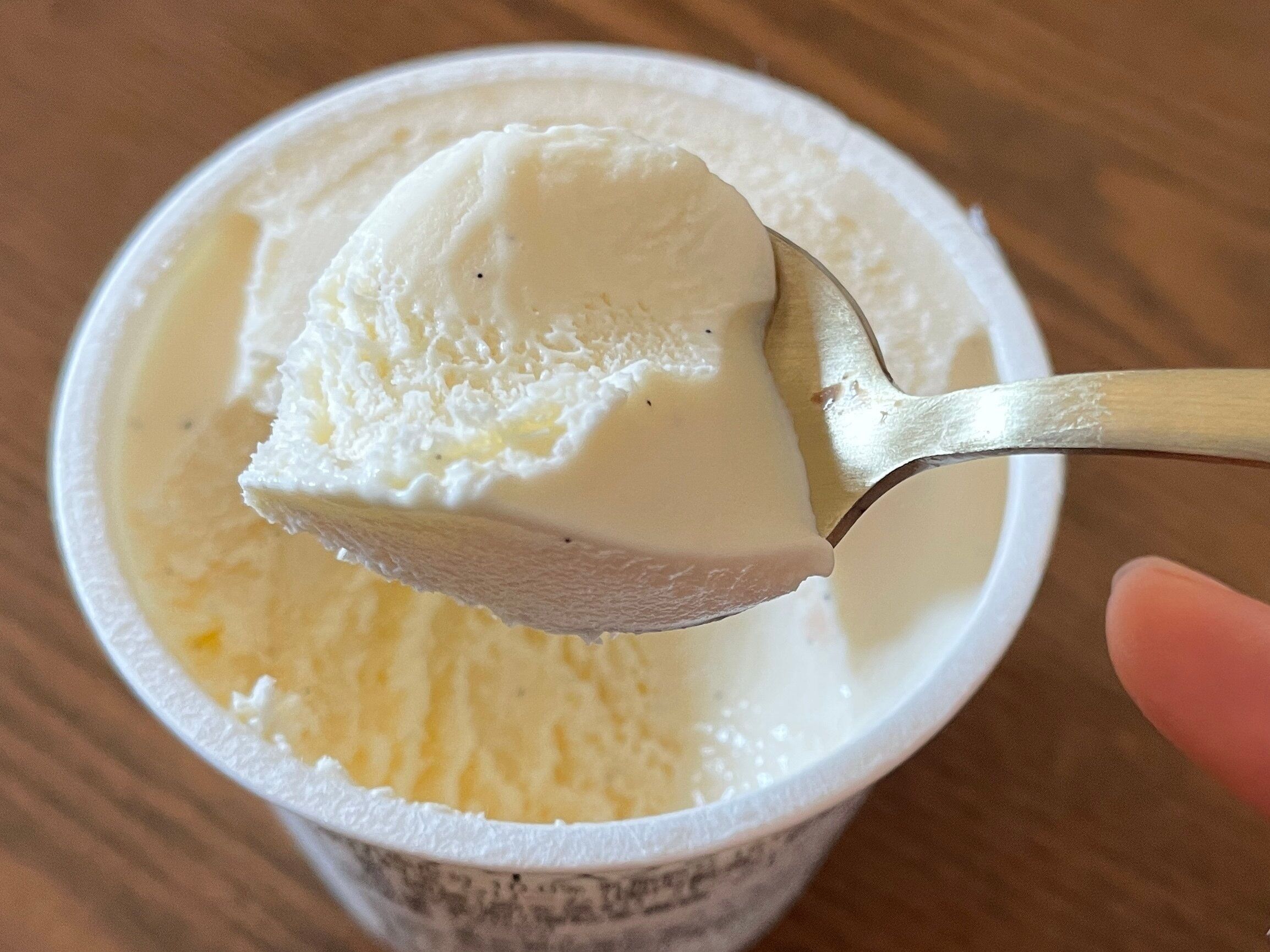 まずは、アイスのなめらかさに驚きます。冷凍庫から出したばかりなのに、カチカチではないやわらかさ。