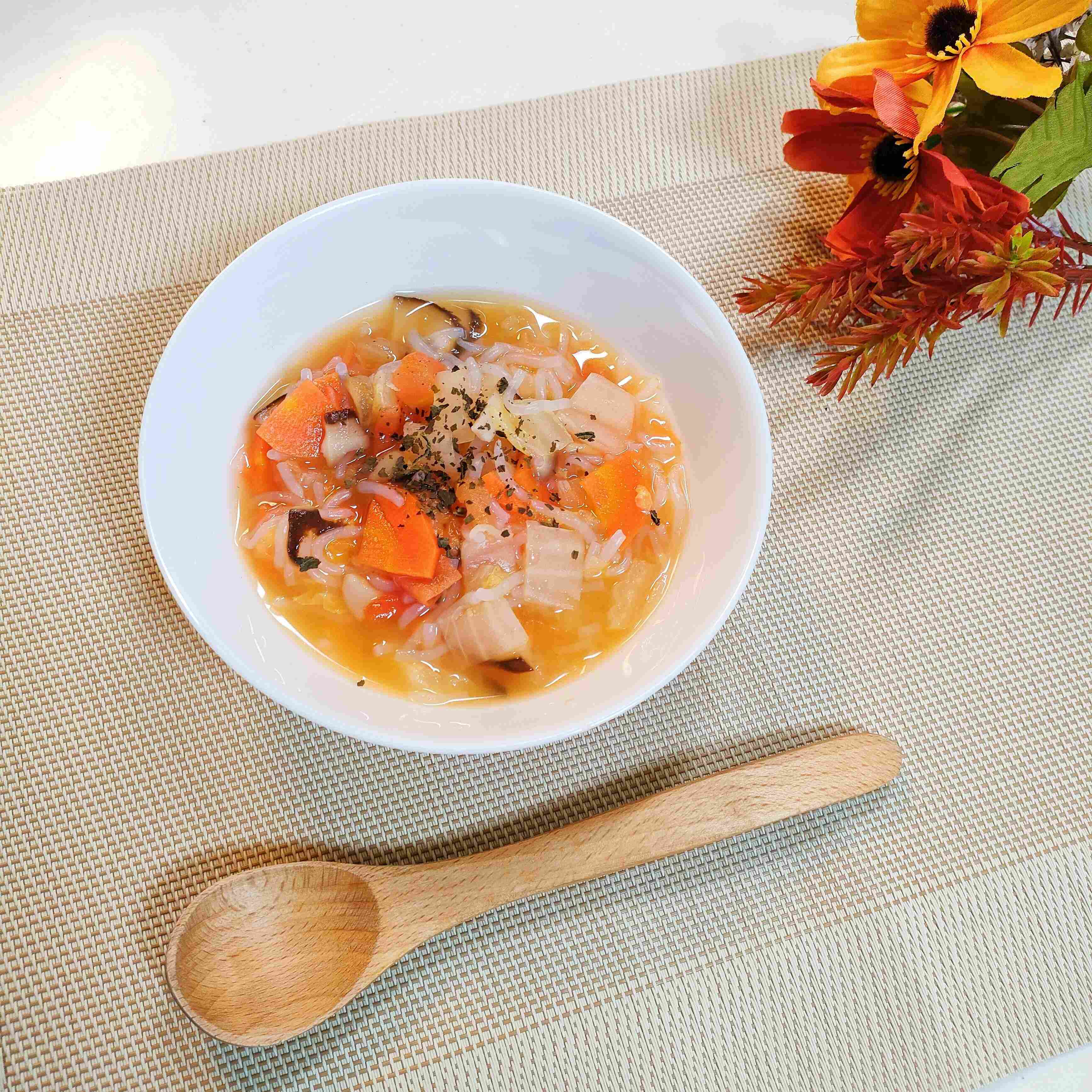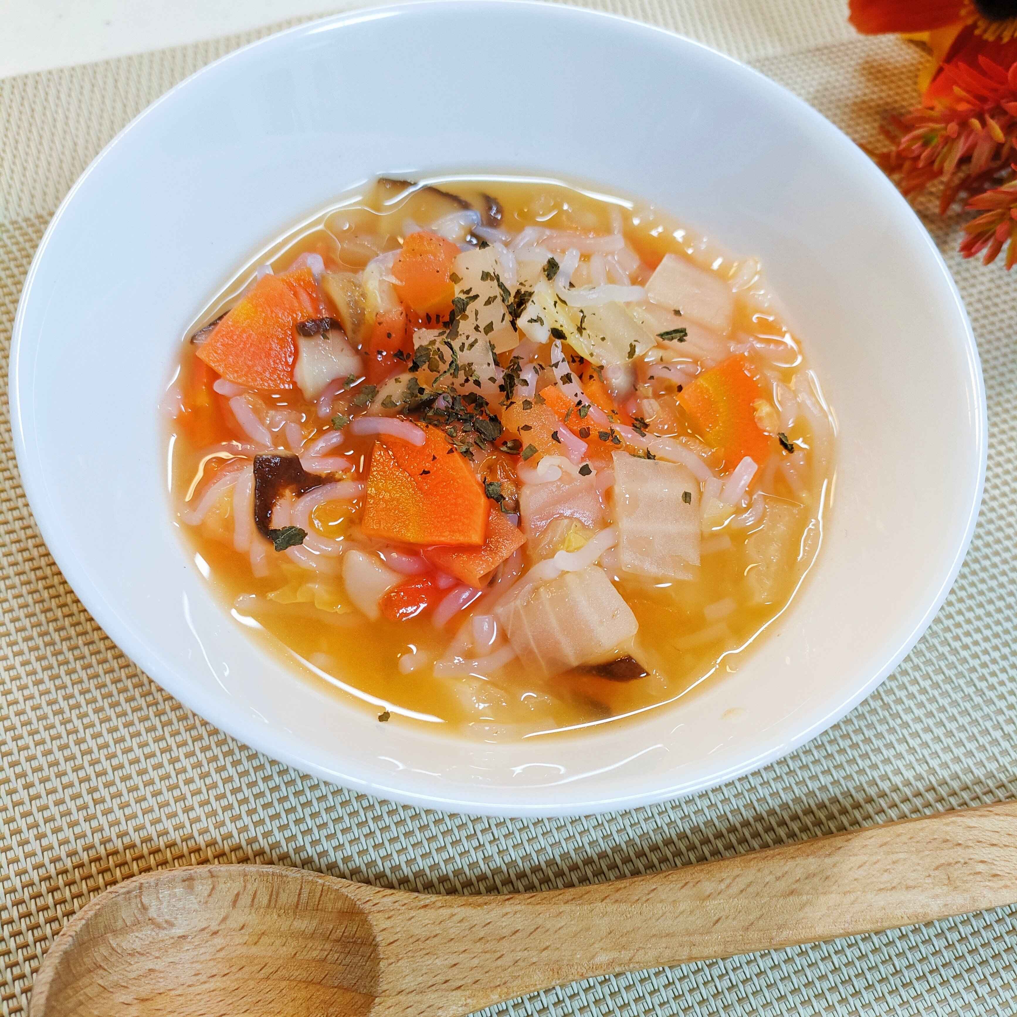 しらたきを入れているので、野菜スープだけど腹持ちがよく、朝食にもおすすめです。