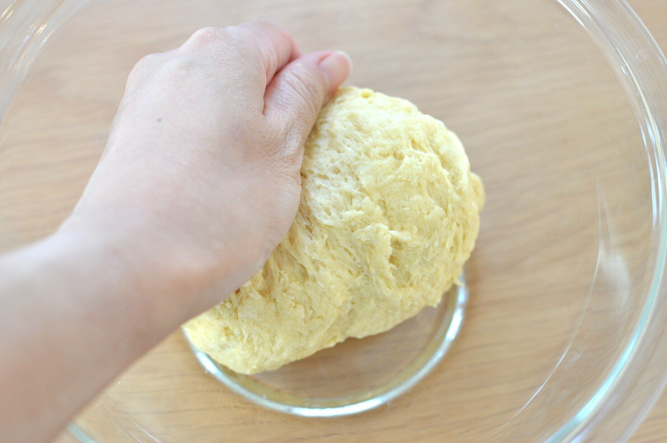 ある程度まとまってきたら、手でこねます。
