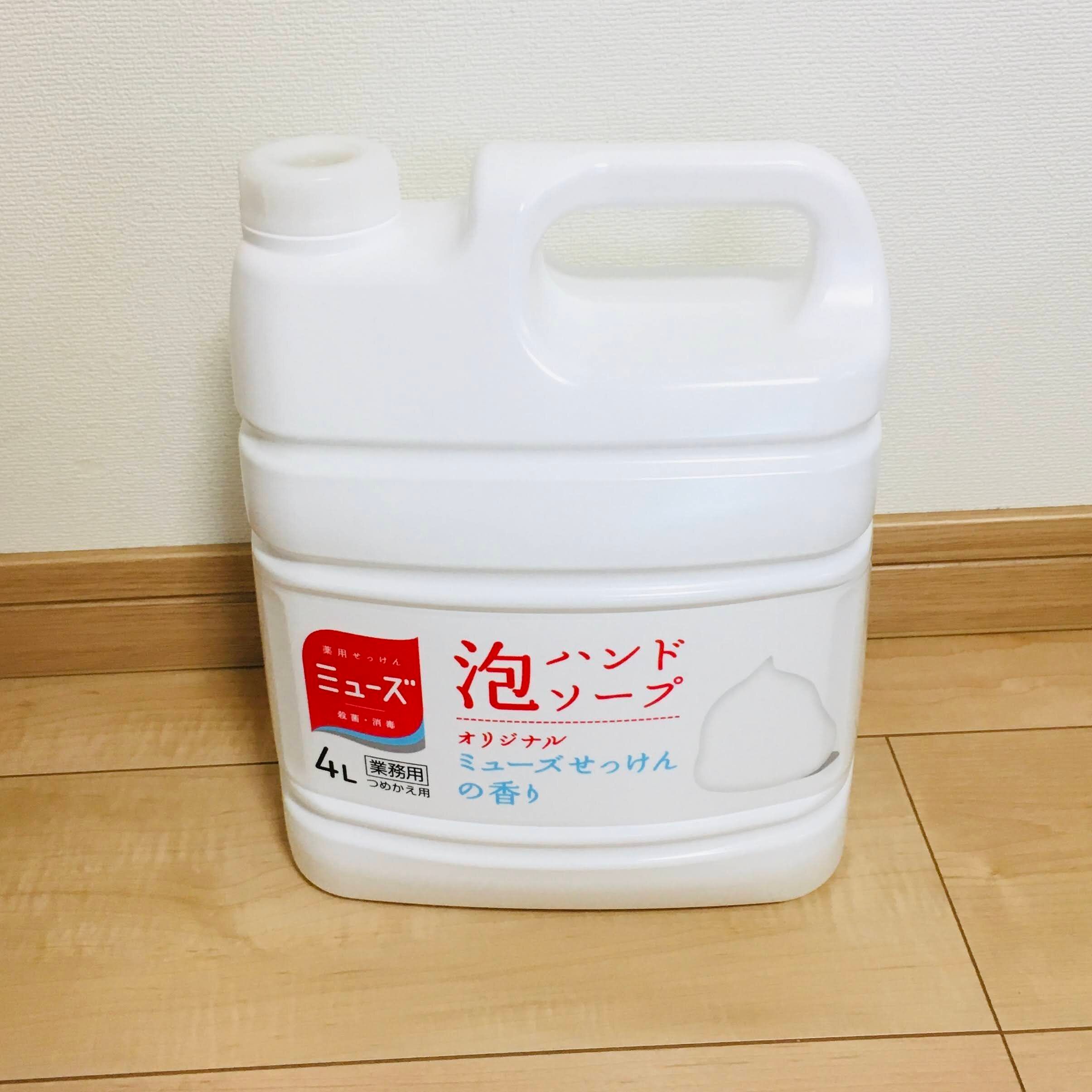 洗濯用洗剤は5Lボトルをいつも購入。手洗い用も、泡ハンドソープの業務用4Lボトルを見つけました。