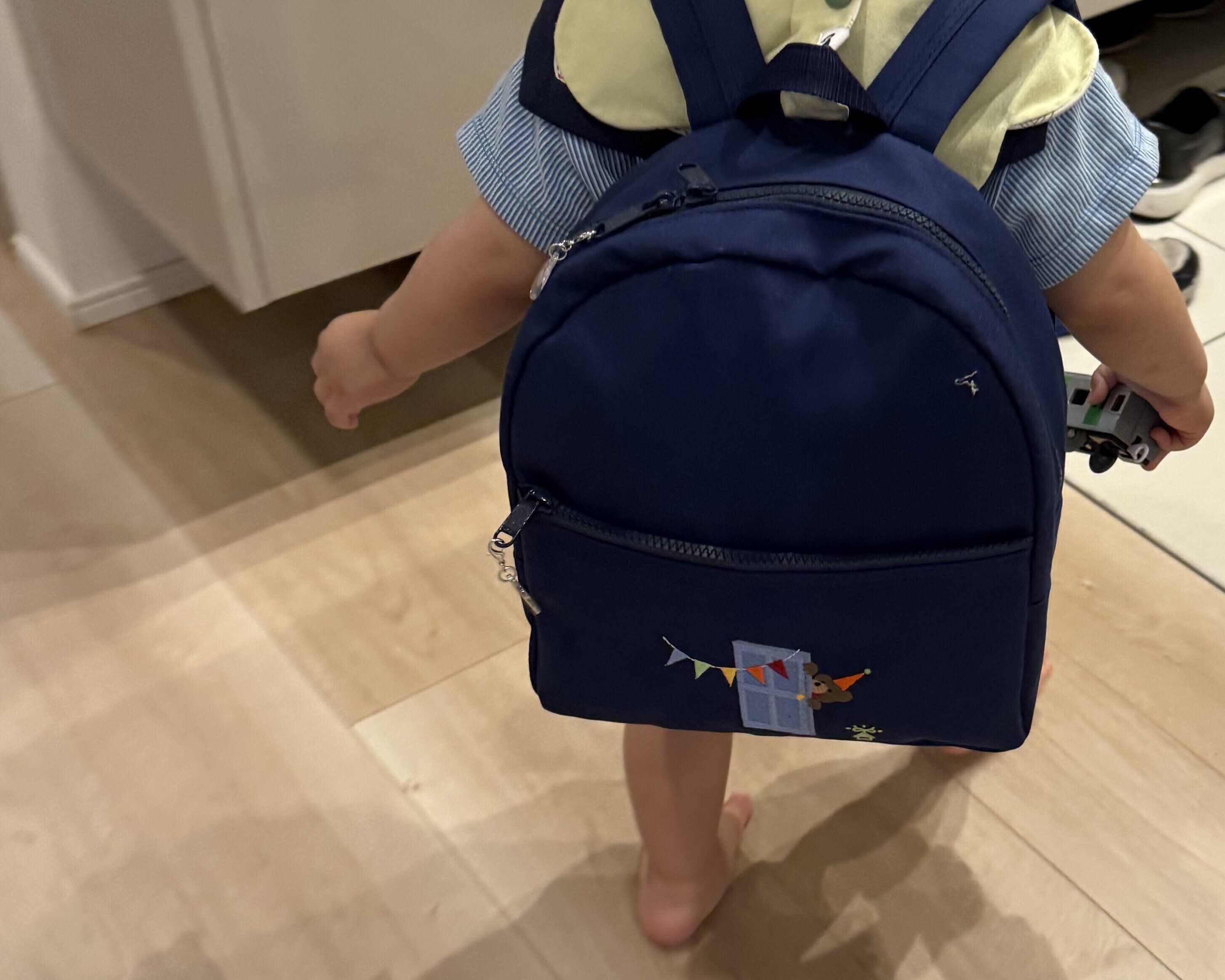 毎朝の登園準備で「あれがない、これがない」と焦らないために、使うモノは“リュック1つに全部まとめる”ルールを。