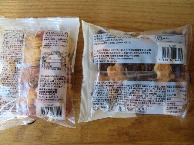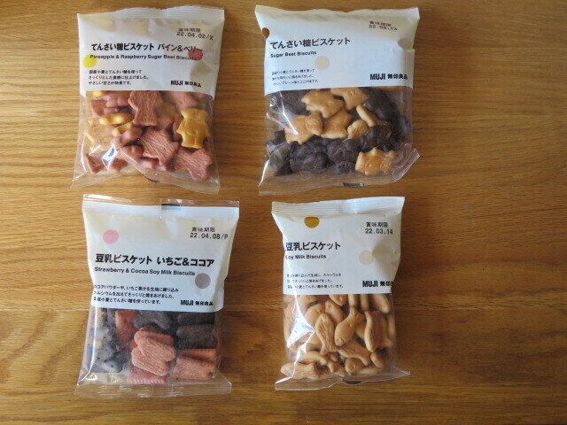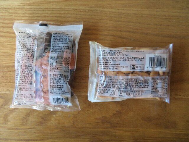 99円で買える無印良品のぽち菓子シリーズの中でも定番で人気もある、豆乳ビスケットとてんさい糖ビスケット。