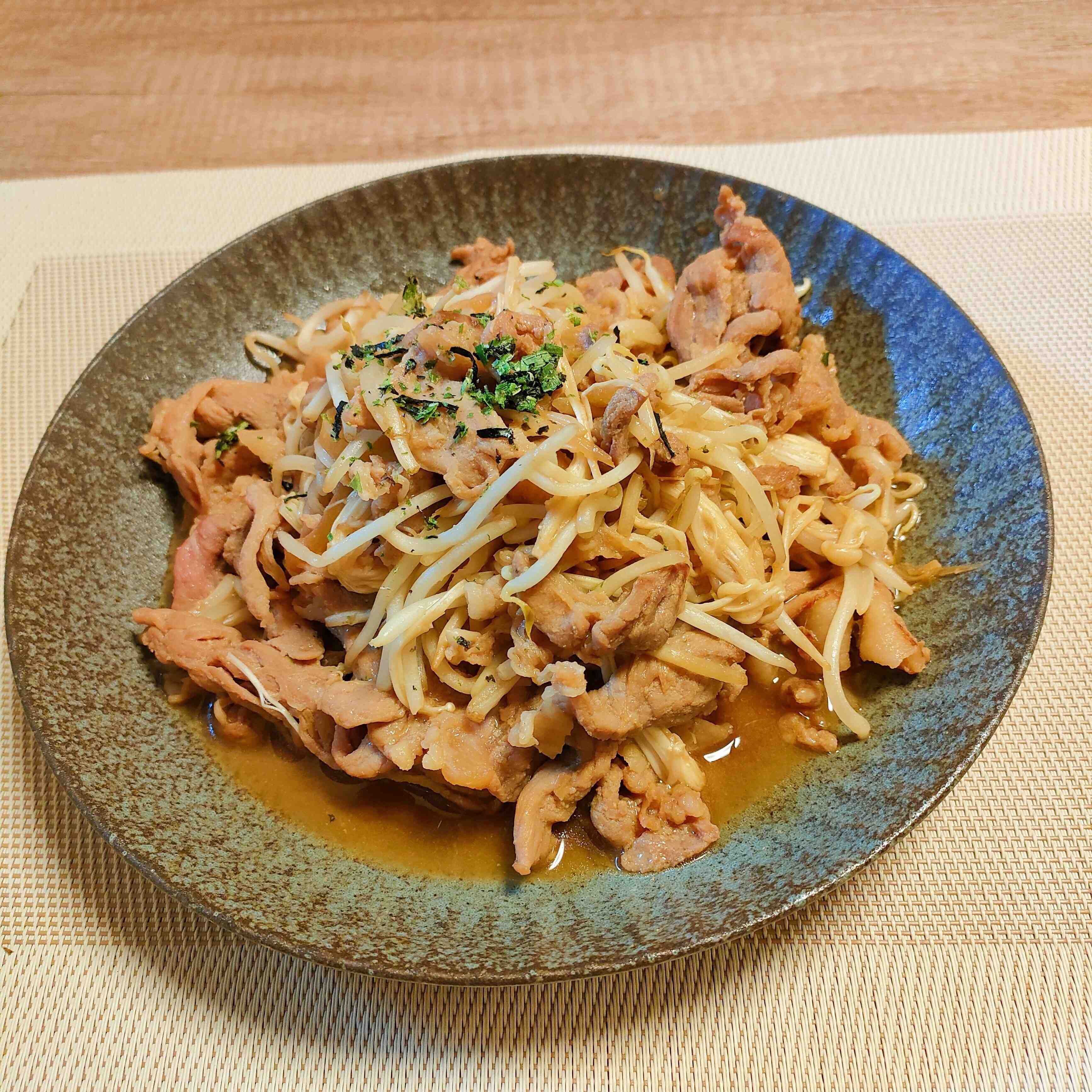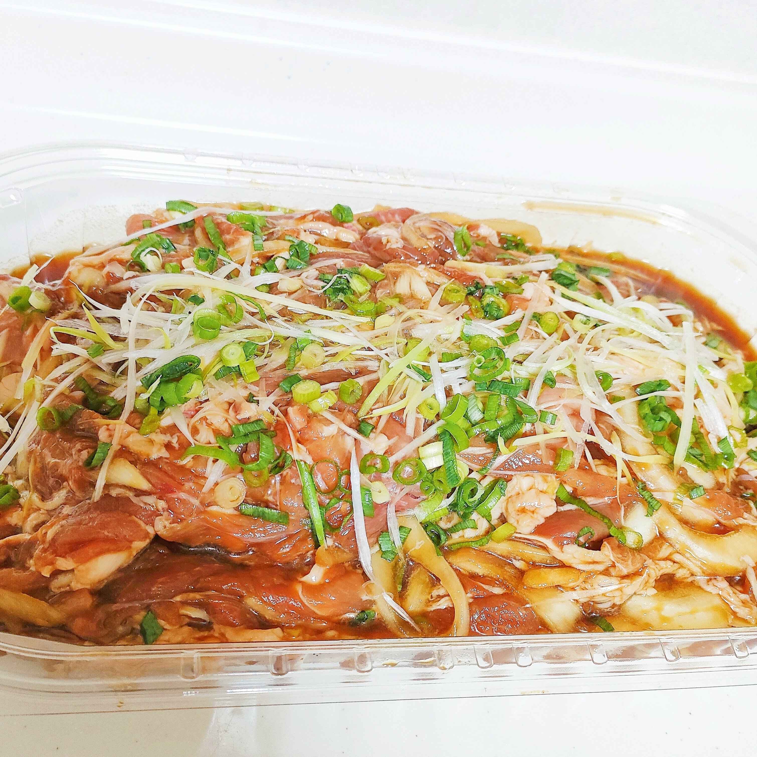 主な材料は豚肉、玉ねぎ、長ねぎで、しっかりと味のついた惣菜になっています。