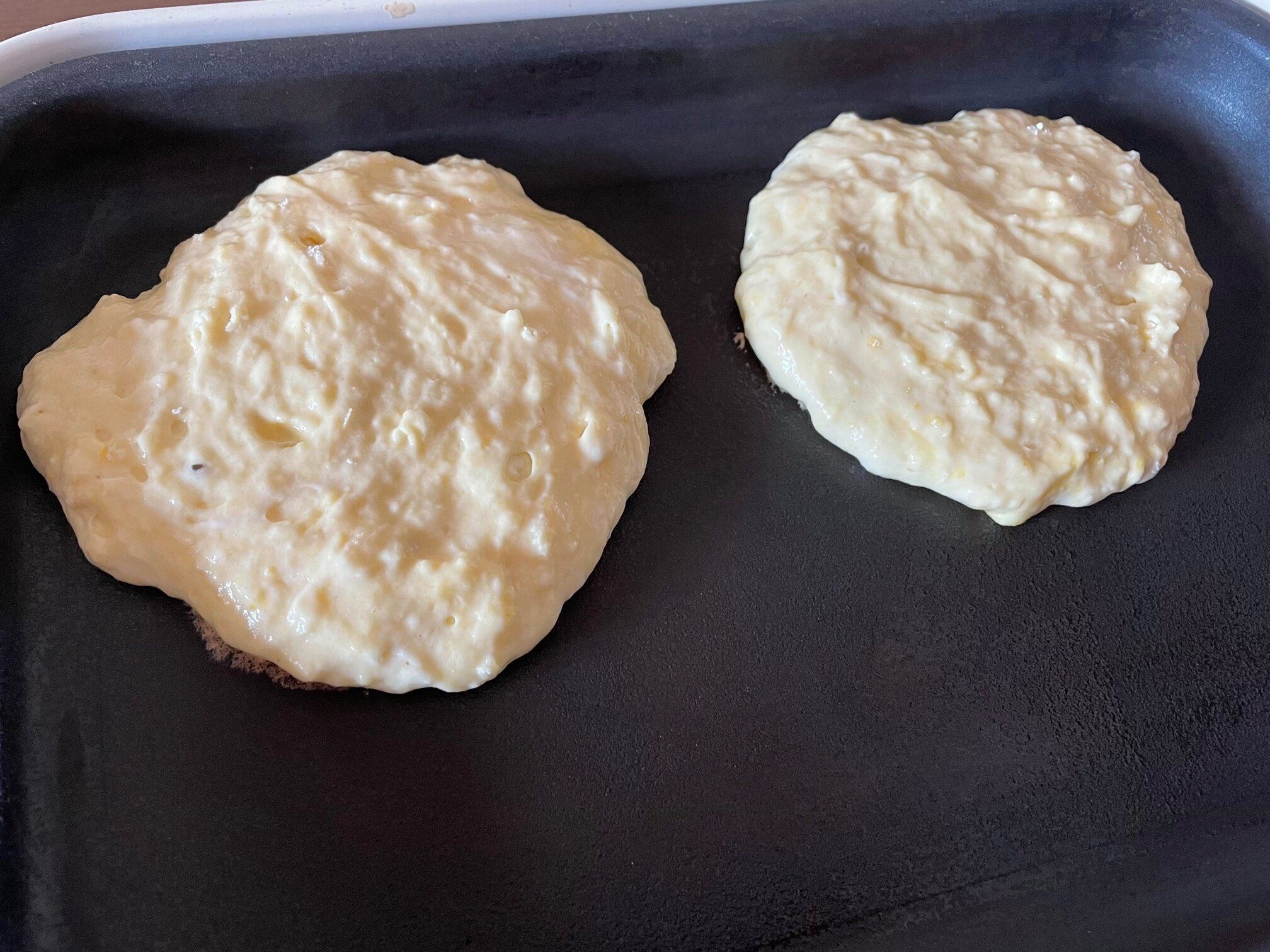 3.生地がプツっとしてきたらひっくり返して焼く