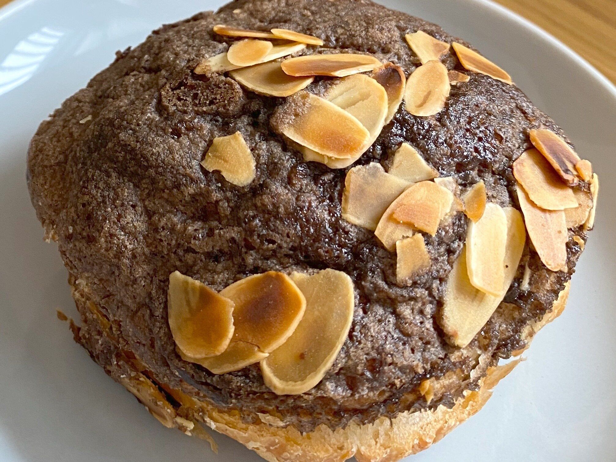 デニッシュ生地の上のクッキー生地も柔らかく、トッピングのアーモンドスライスも若干しっとりとしています。