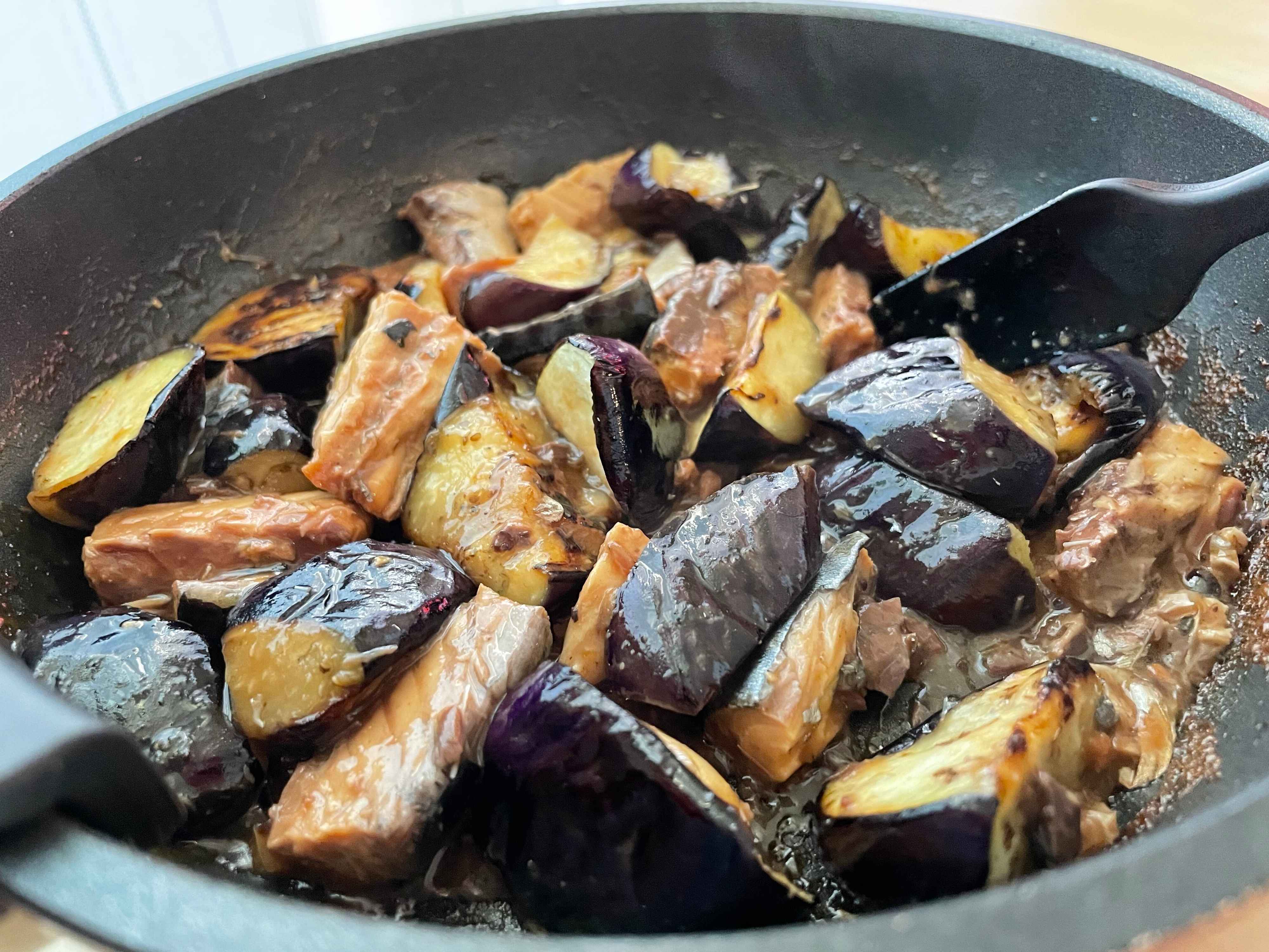 さば缶と炒めるだけ「なすとさばの味噌炒め」